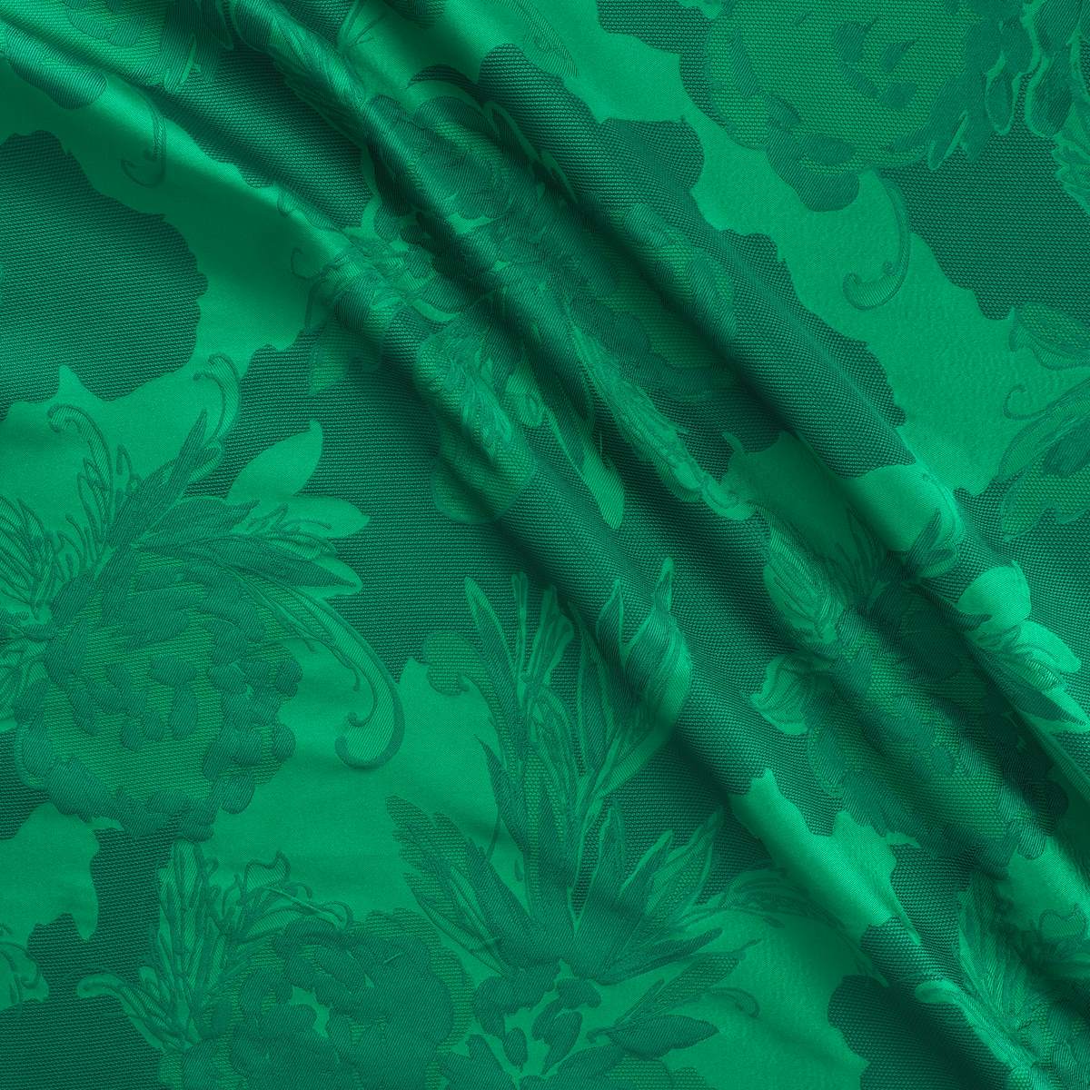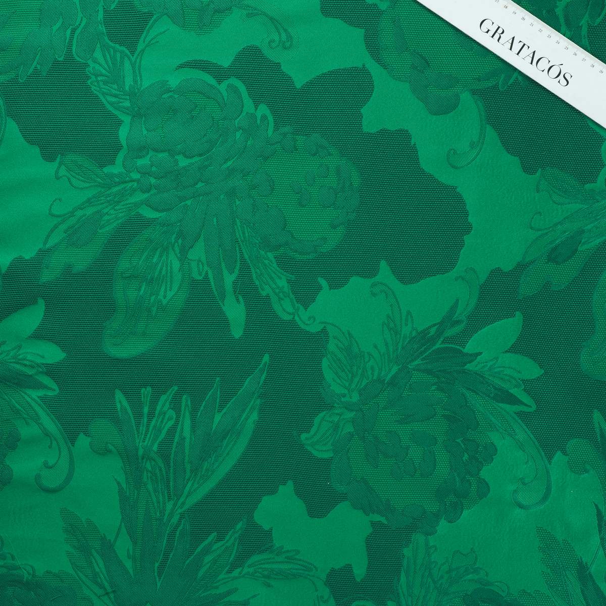 Jacquard Mikado con diseño de flores planas superpuestas y diferentes dibujos de estructura. Todo realizado con hilo tintado para aportar contraste y sofisticación.