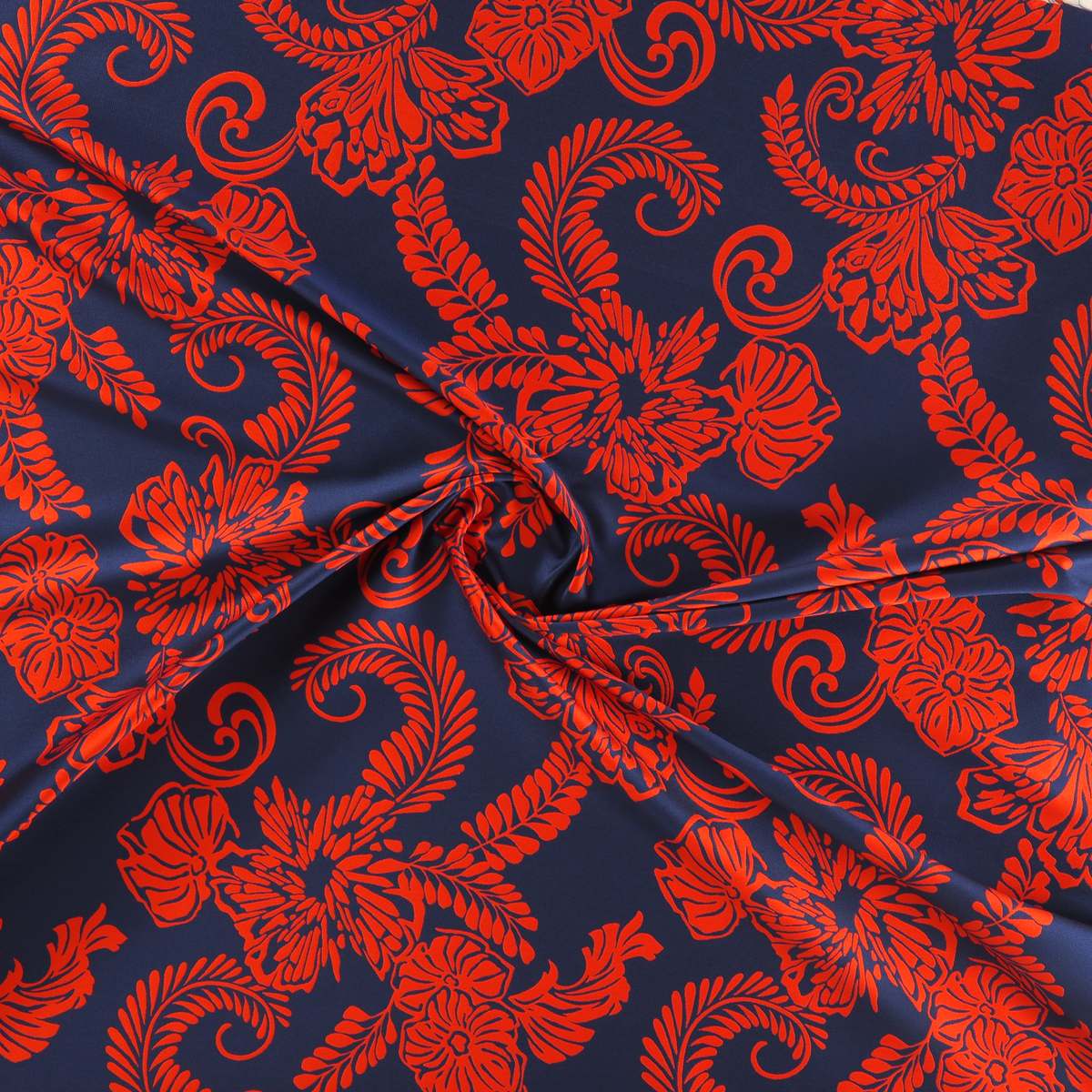 Mikado jacquard con precioso diseño de inspiración ornamental, reinterpretado en una versión estilizada, moderna y elegante. Todo el hilo está tintado.