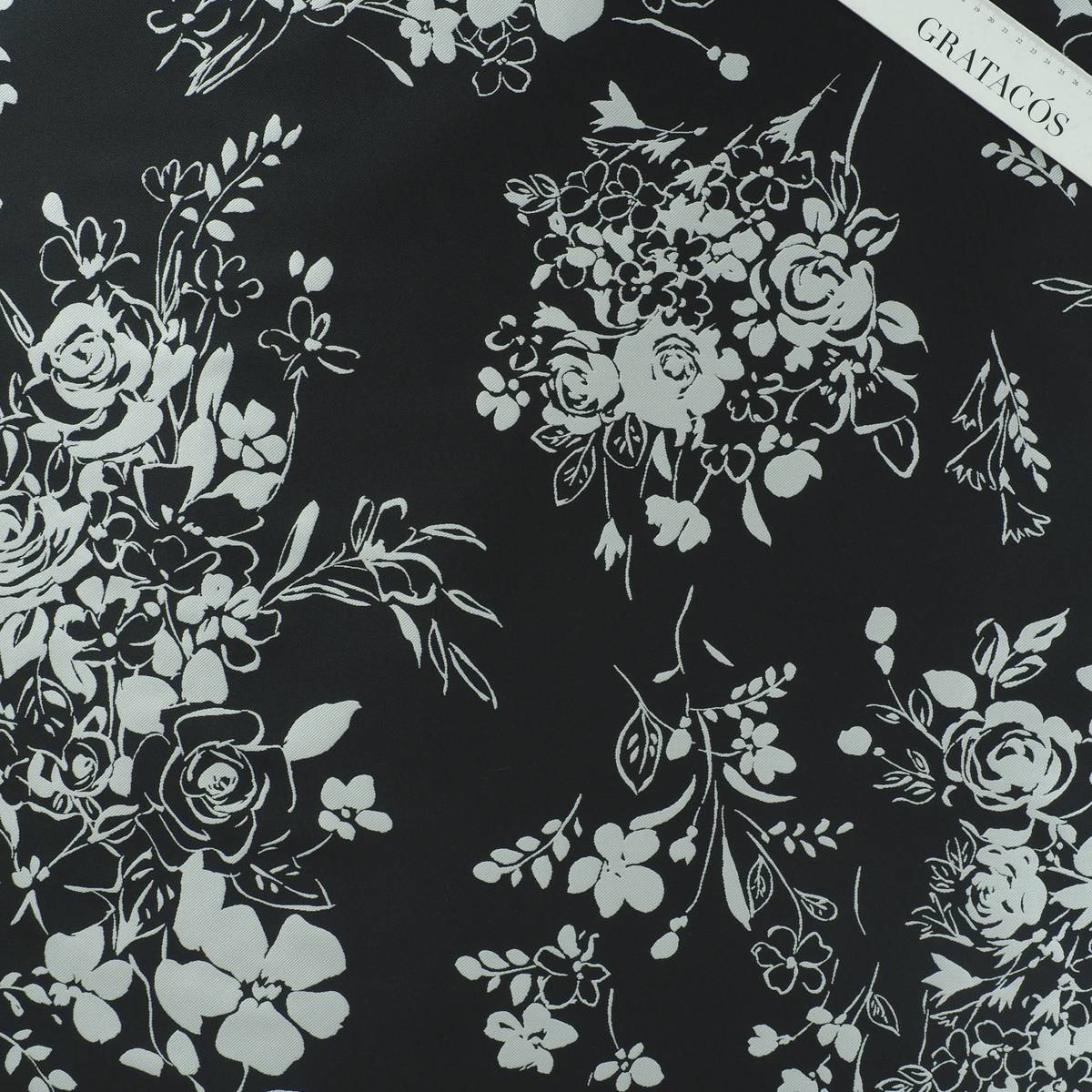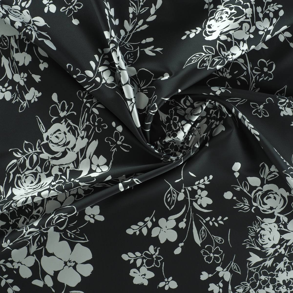 Mikado jacquard 100% PL. Diseño de flores bicolor. Perfecto para prendas de fiesta. Mano sostenida pero suave. Todo hilo tintado.