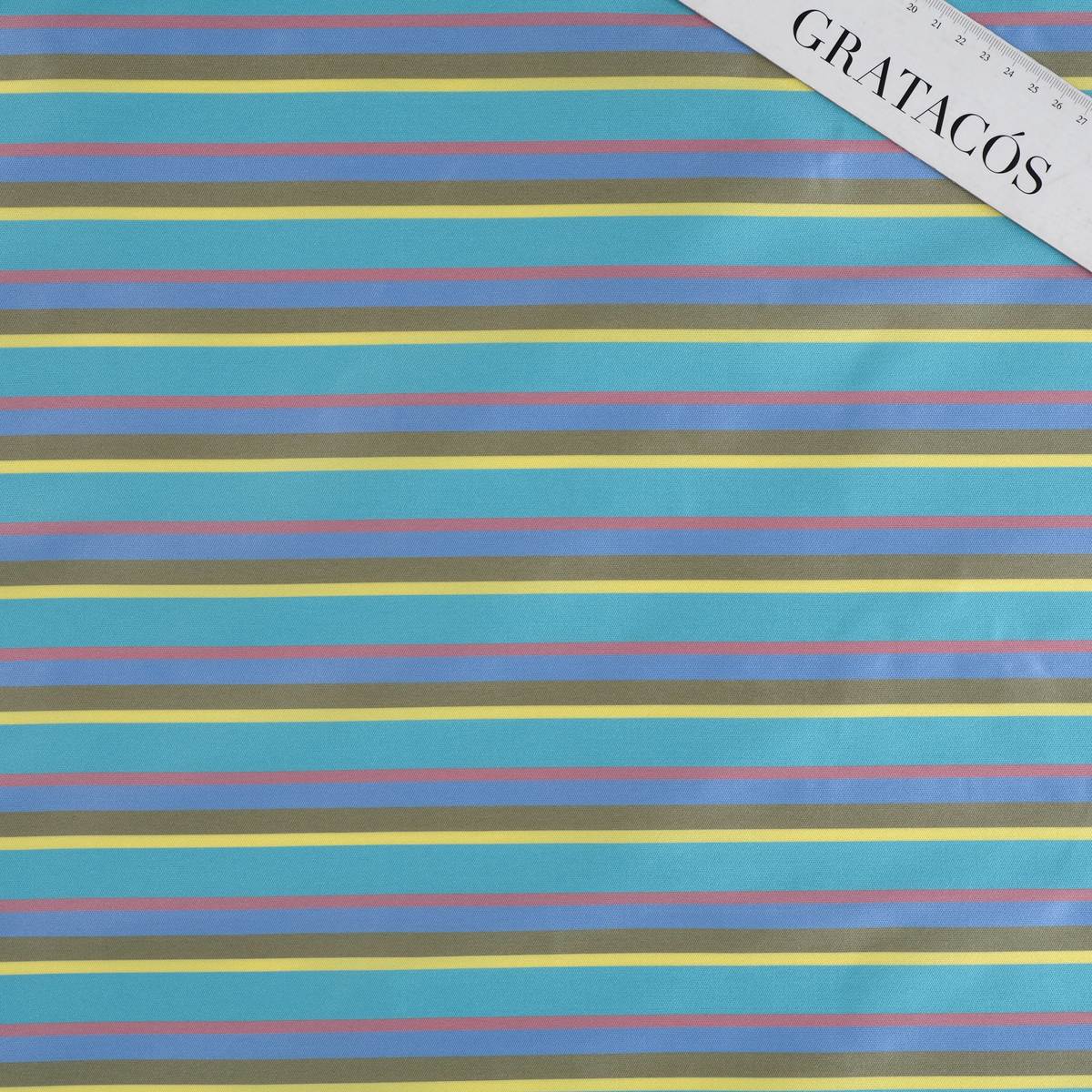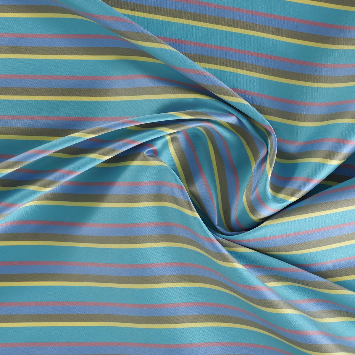 Precioso mikado de rayas con urdimbre y trama de poliéster. El artículo presenta una espectacular raya multicolor con seis tonos. Todo el hilo está tintado.