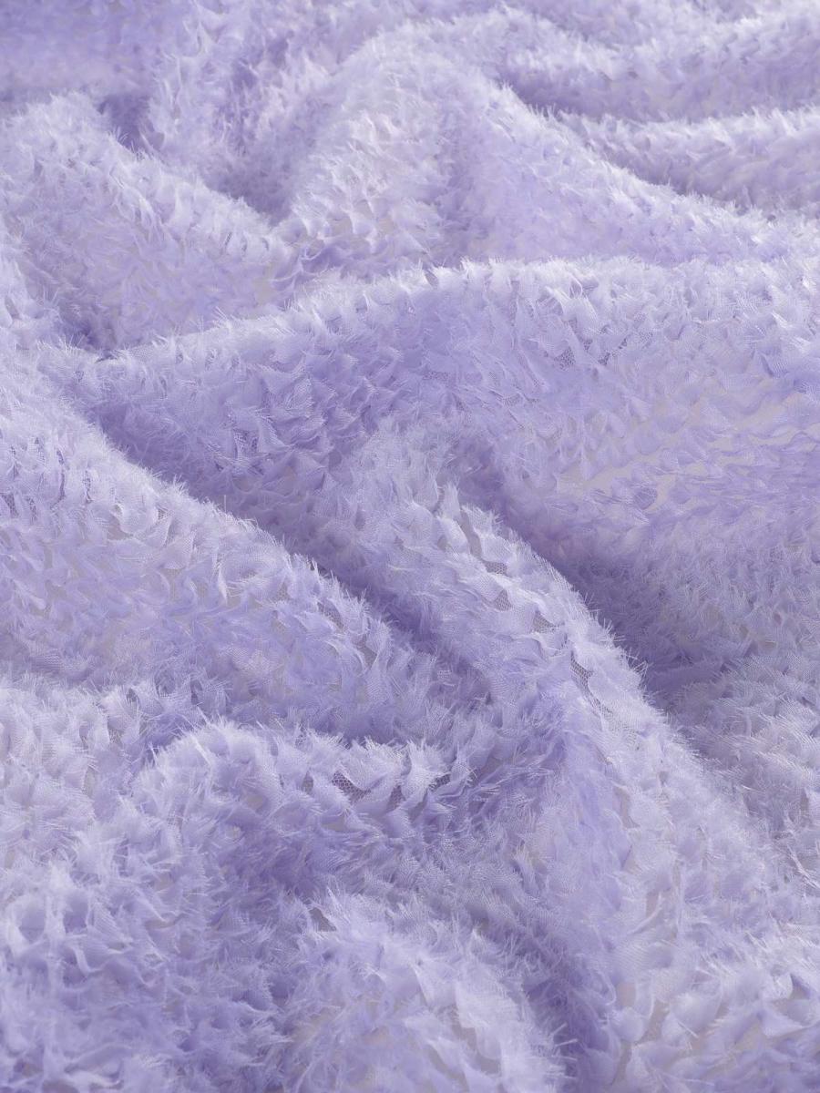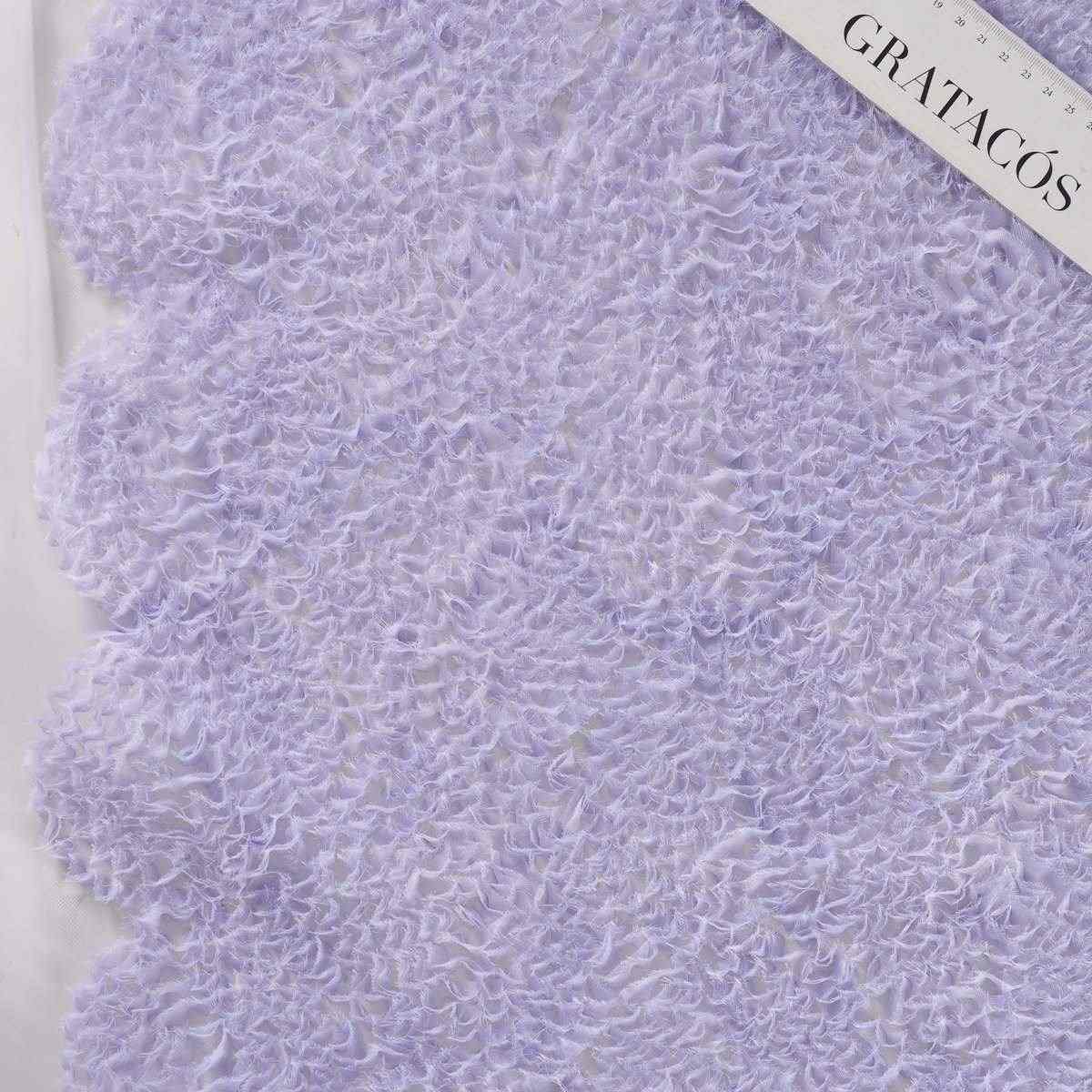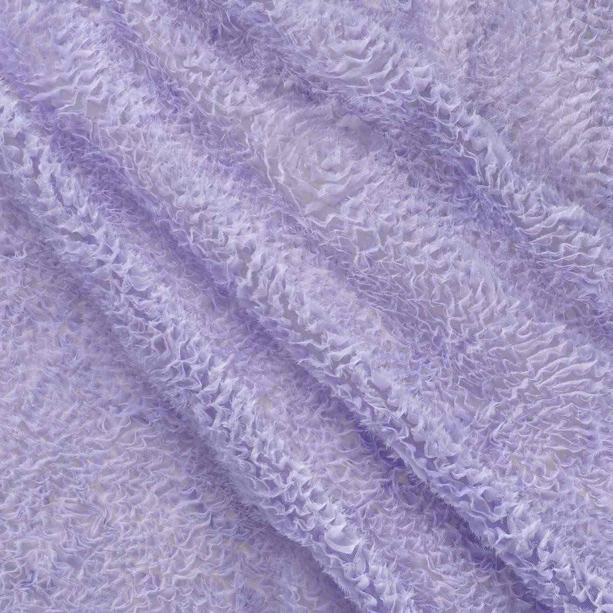 Base de tul bordada con cintas de organza al tono en diseño 3D, logrando un volumen de tacto suave y peso ligero.