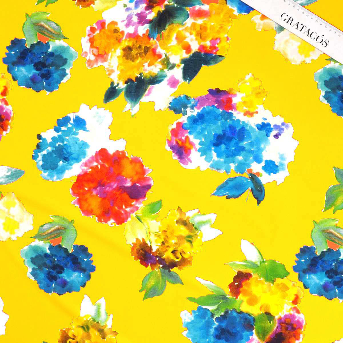 ARTÍCULO 177 CREP DE POLIÉSTER. ESTAMPAMOS UN PRECIOSO DISEÑO DE FLORES, CON UN ESTUPENDO COLORIDO MULTICOLOR.