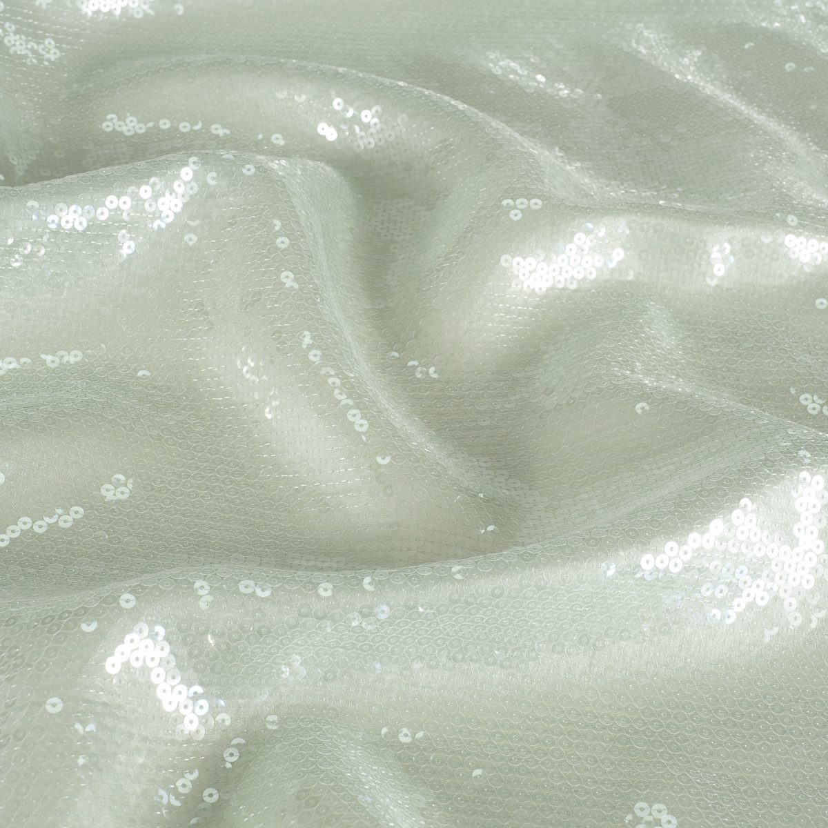 Tejido de organza brillante completamente bordado con lentejuelas transparentes de 5 mm.
