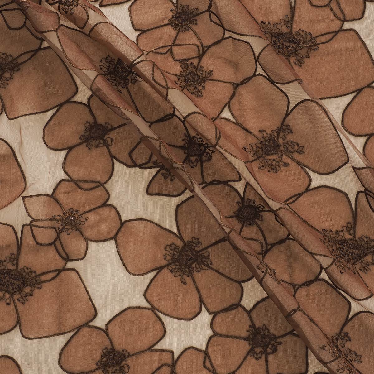 InicioColecciónGasa & Organza BordadaFlor organza sobre tul =2931 marron