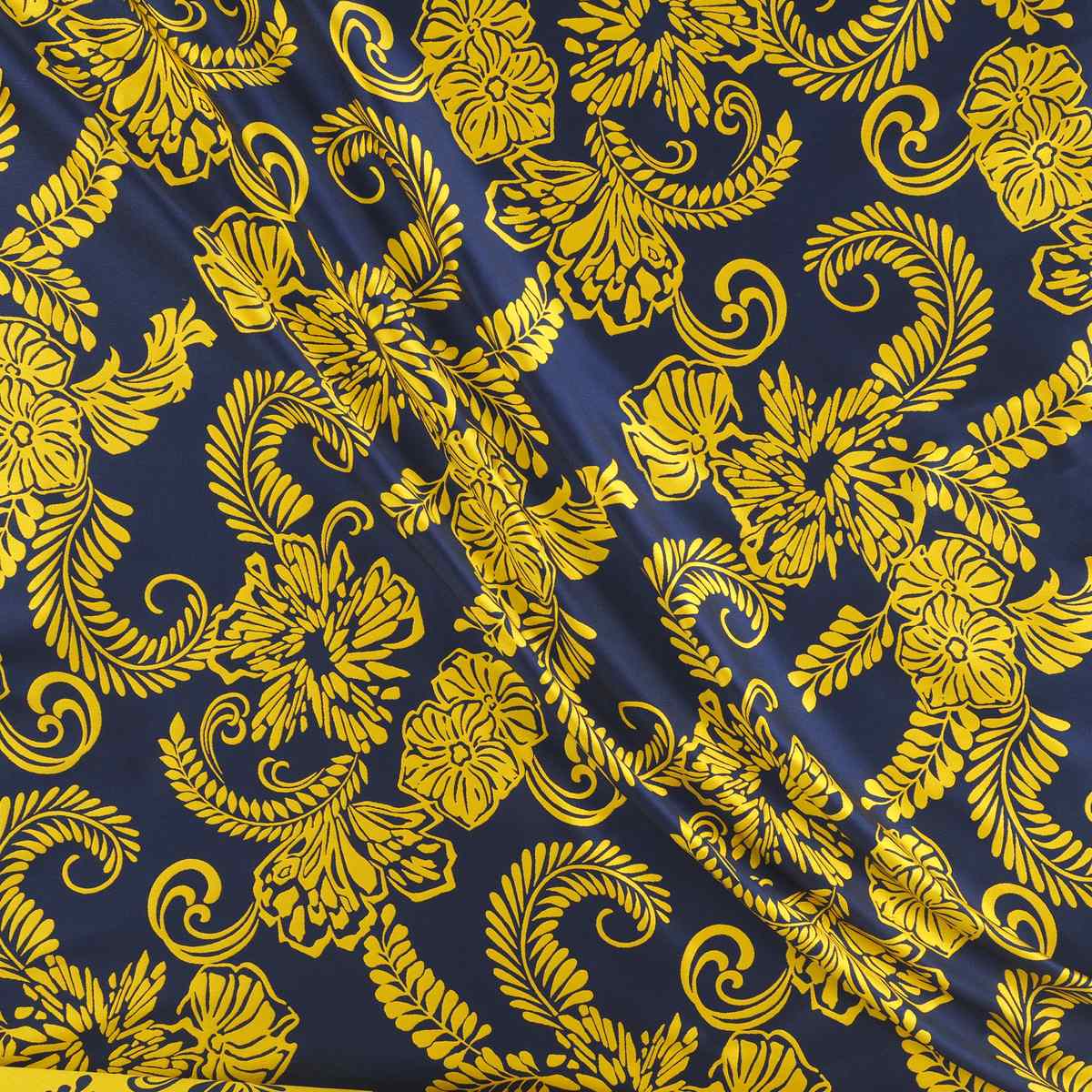 Mikado jacquard con precioso diseño de inspiración ornamental, reinterpretado en una versión estilizada, moderna y elegante. Todo el hilo está tintado.