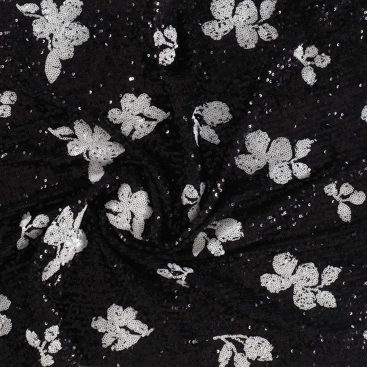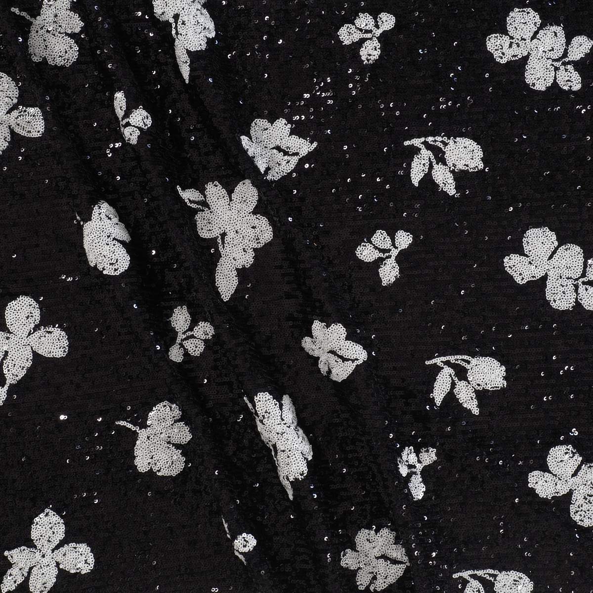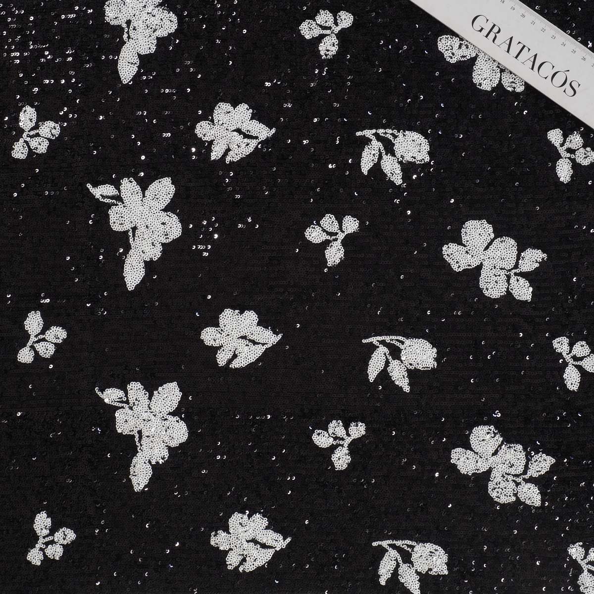 Sofisticado diseño de flores y rayas en el fondo, con microlentejuelas en blanco y negro. La base es un punto ligero de poliamida y elastano. Tintado en pieza.
