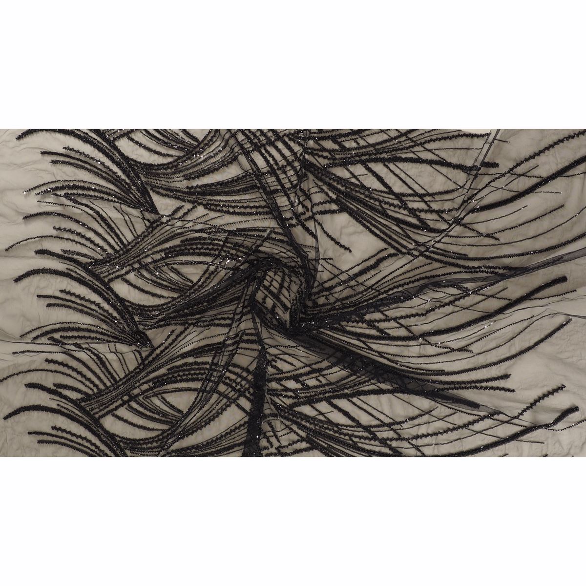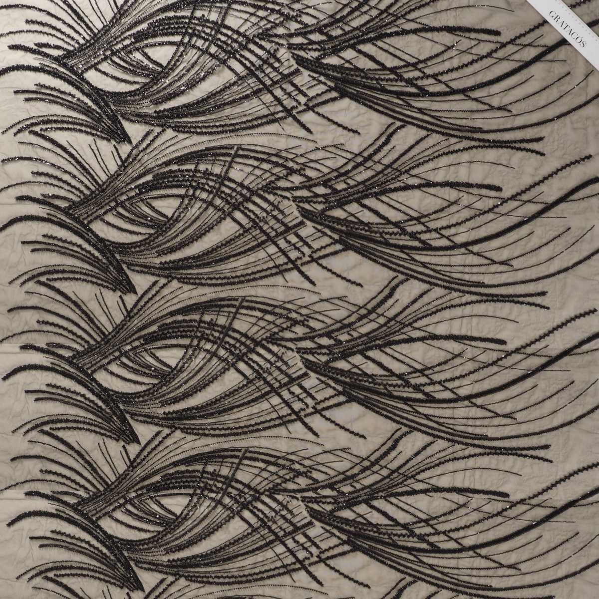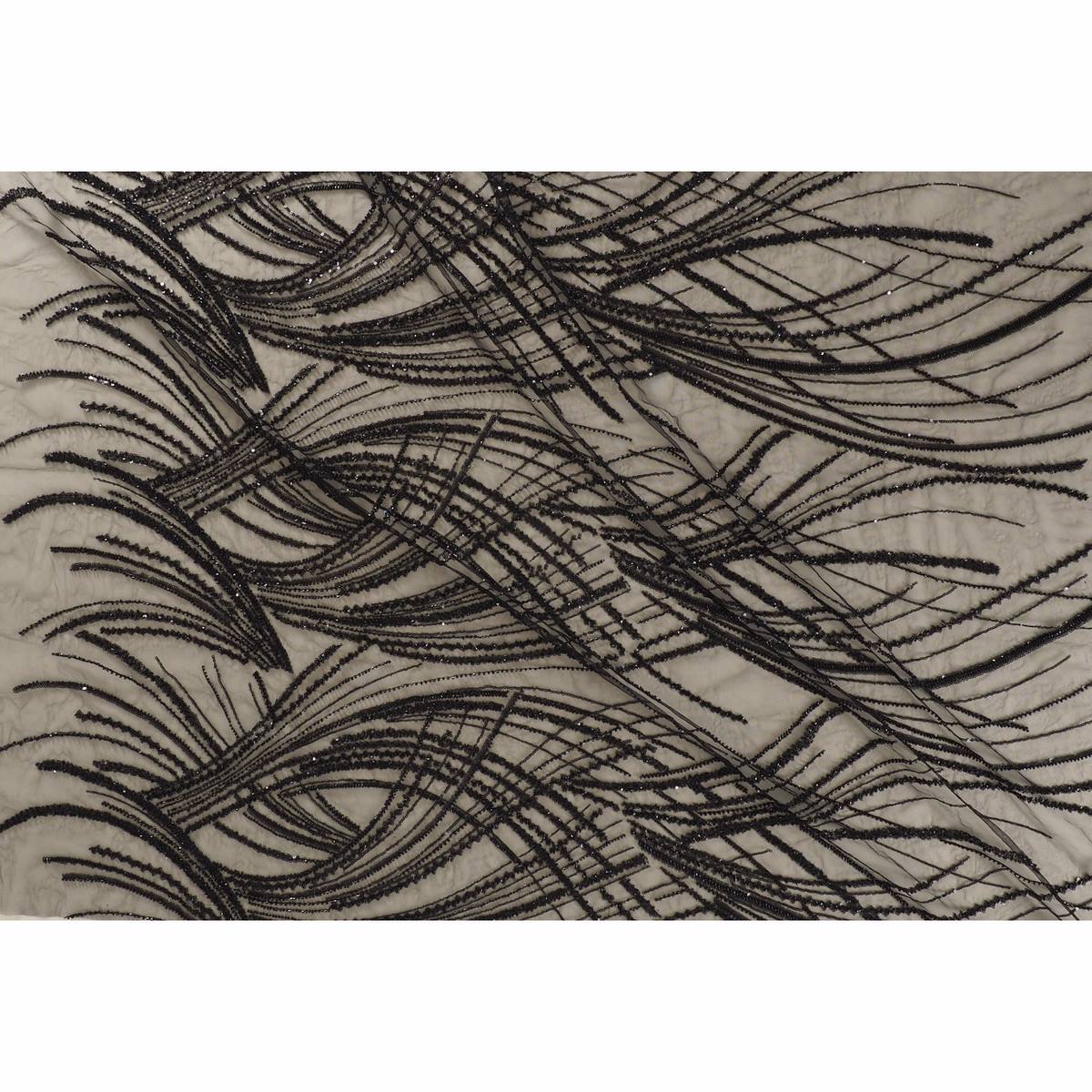 Diseño de ondas bordado sobre tul con lentejuelas y cuentas. Base de tul de poliéster.