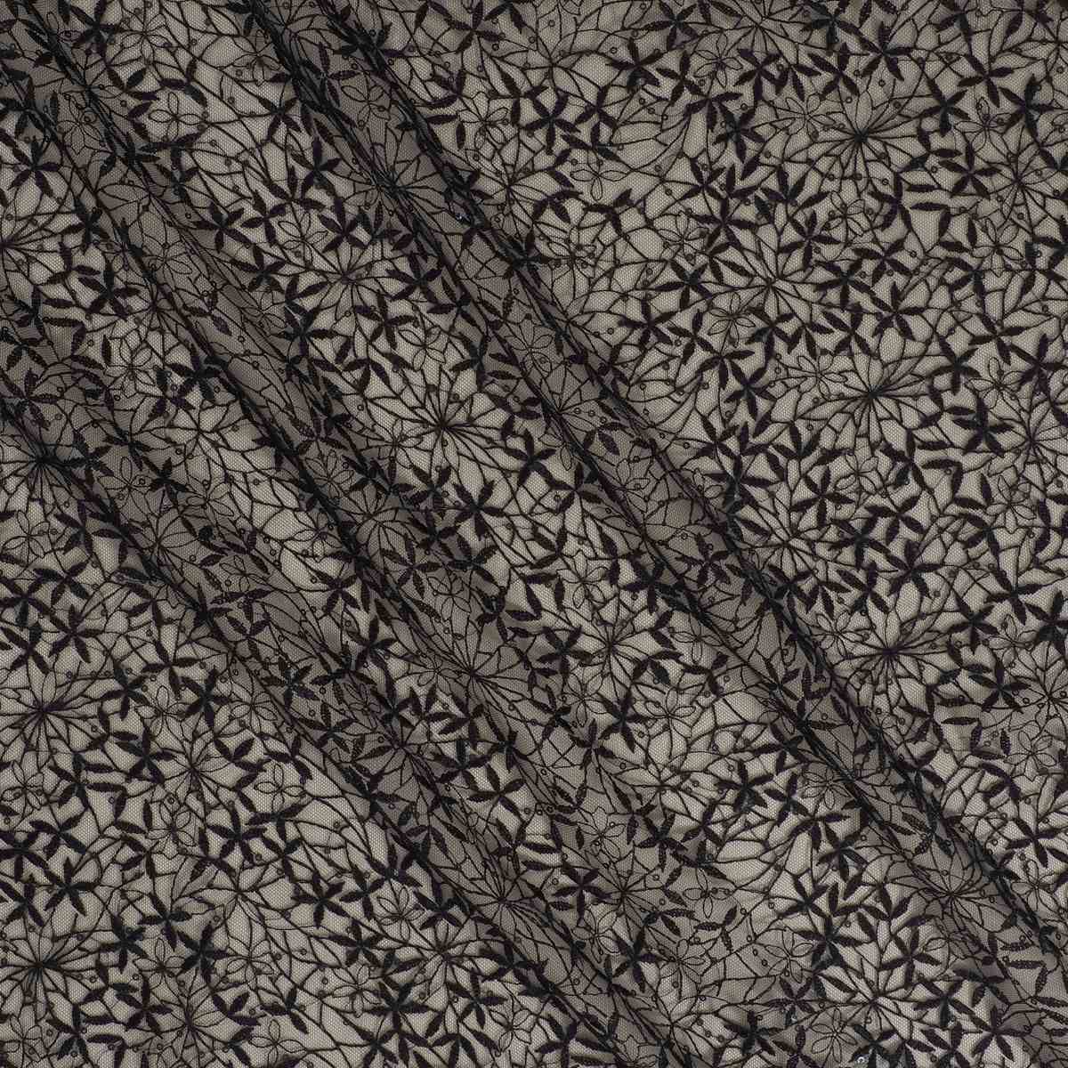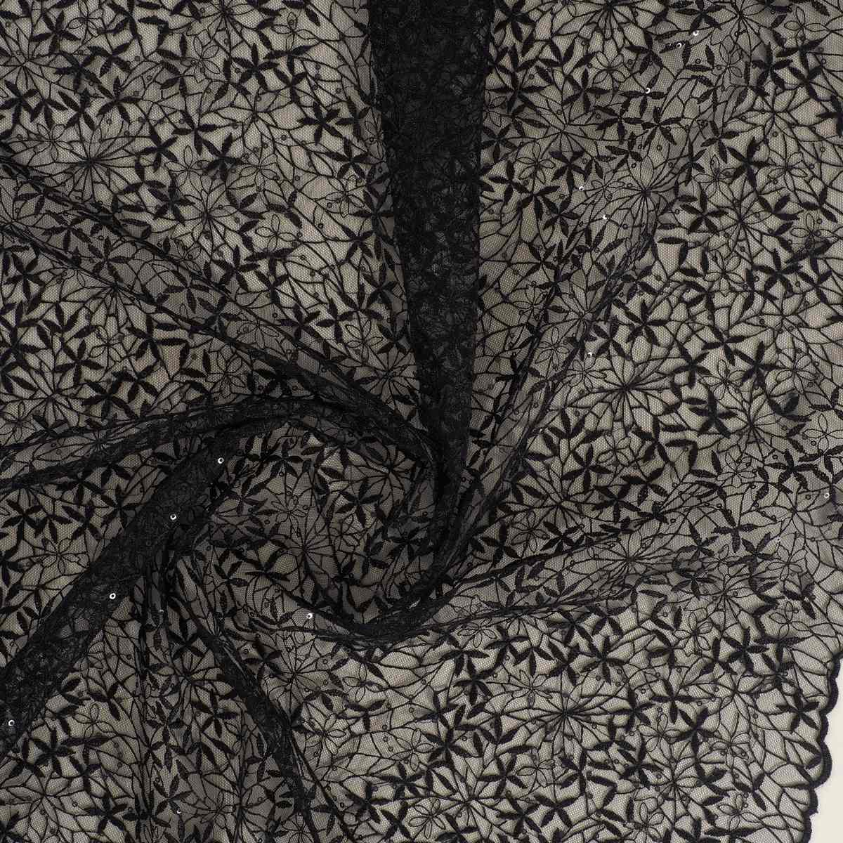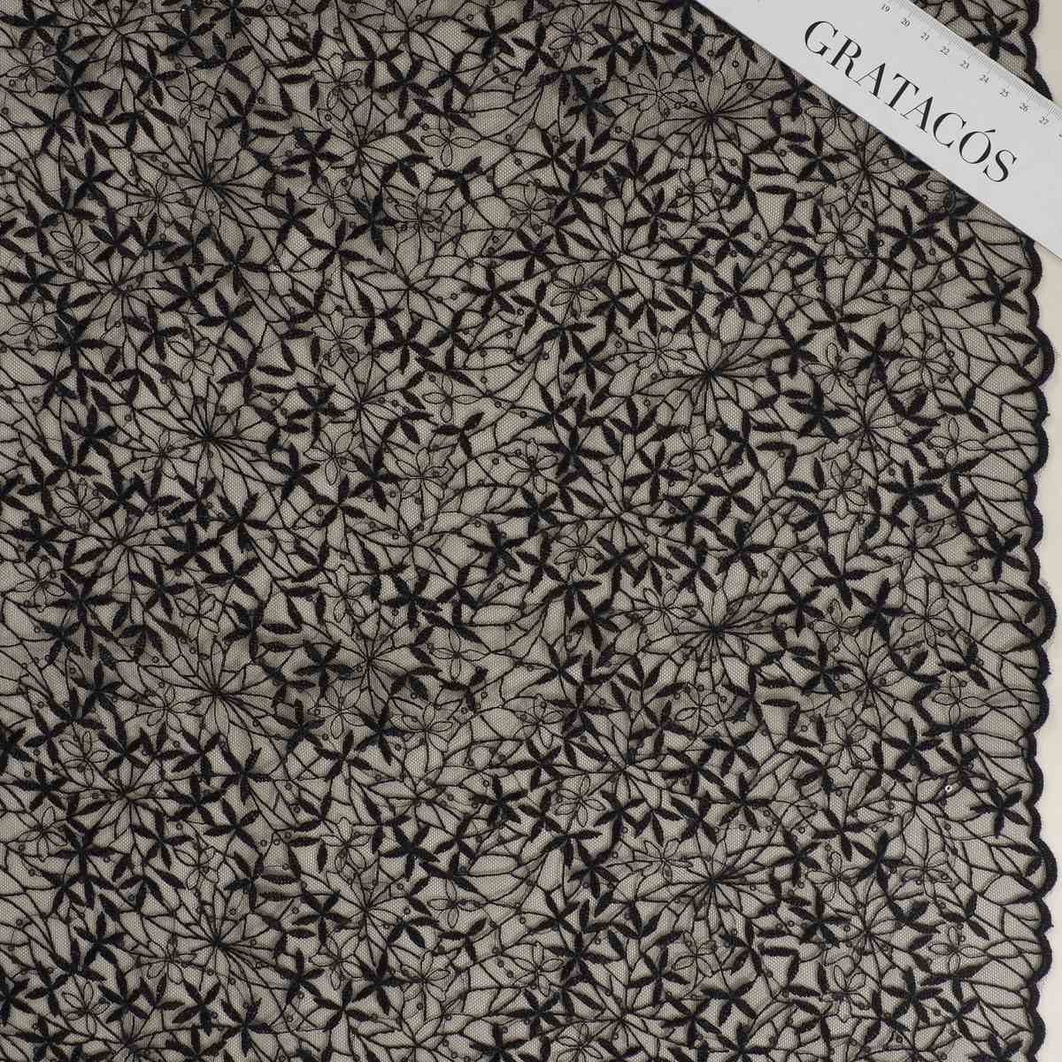 Tul bordado con delicadas flores y lentejuelas a tono que aportan un sutil toque de brillo y elegancia.