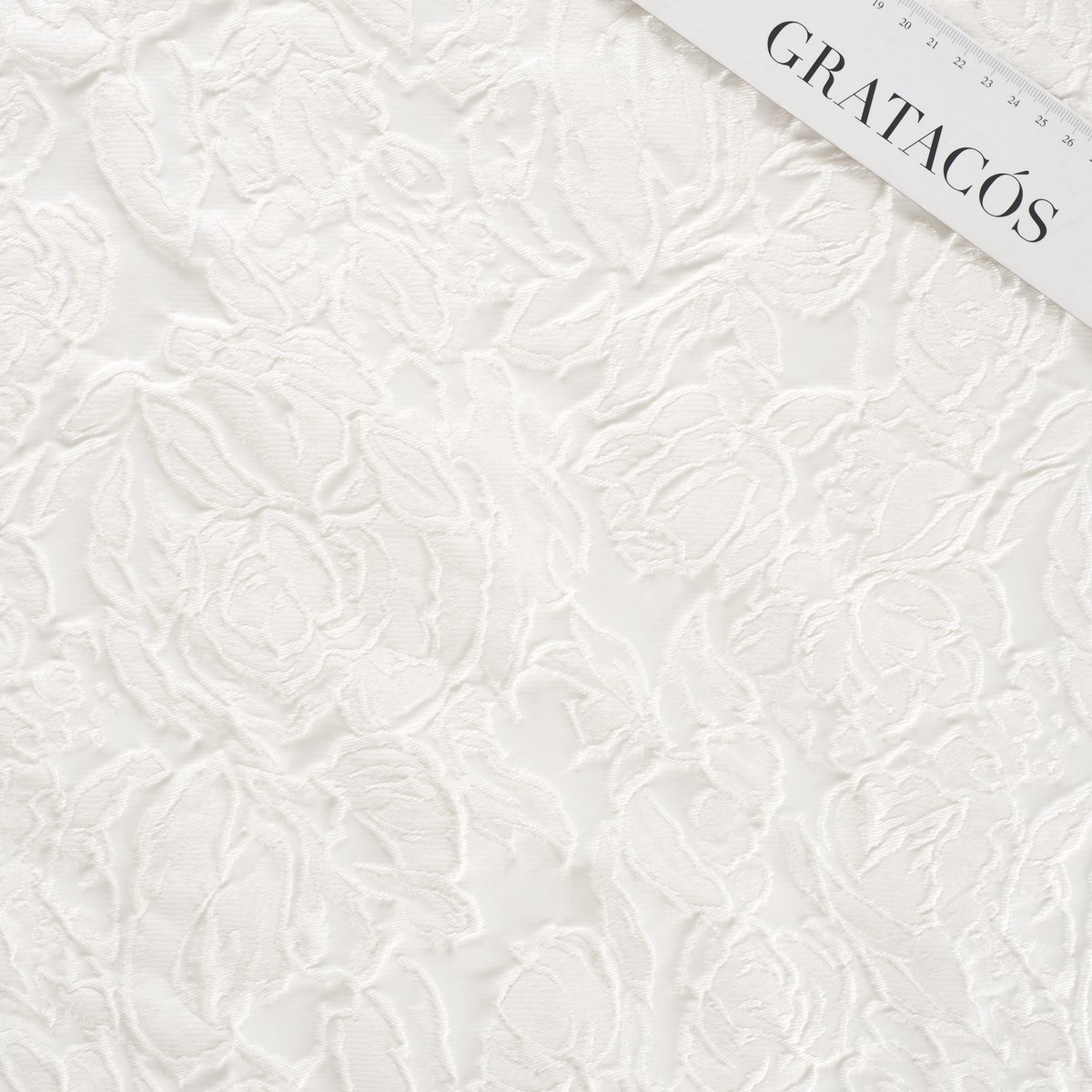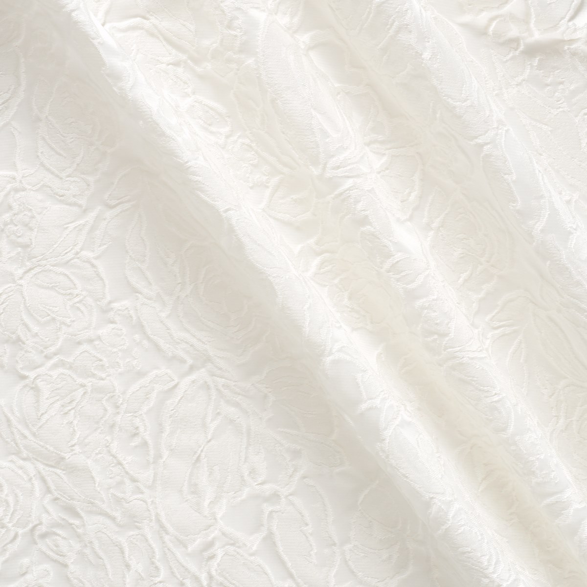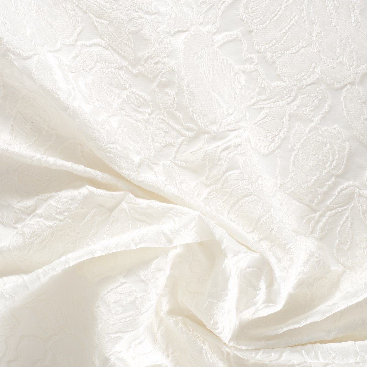 Cloqué jacquard with refined raised texture and satin base. Monochrome floral design, perfect for elegant garments. Made with 33% recycled polyester. Fully yarn-dyed.