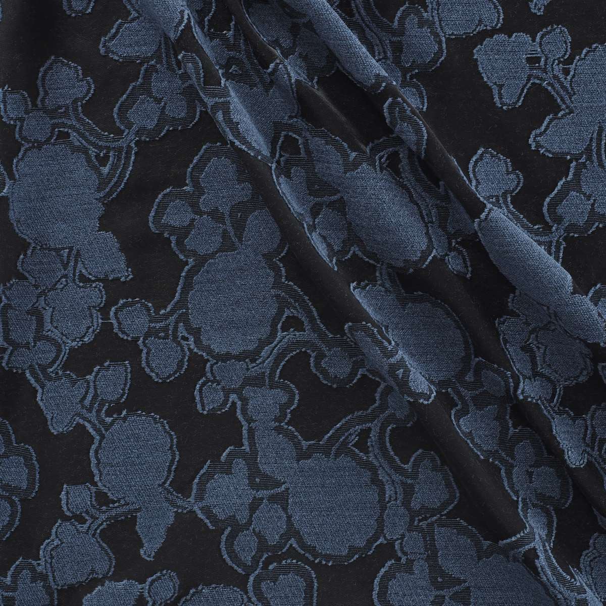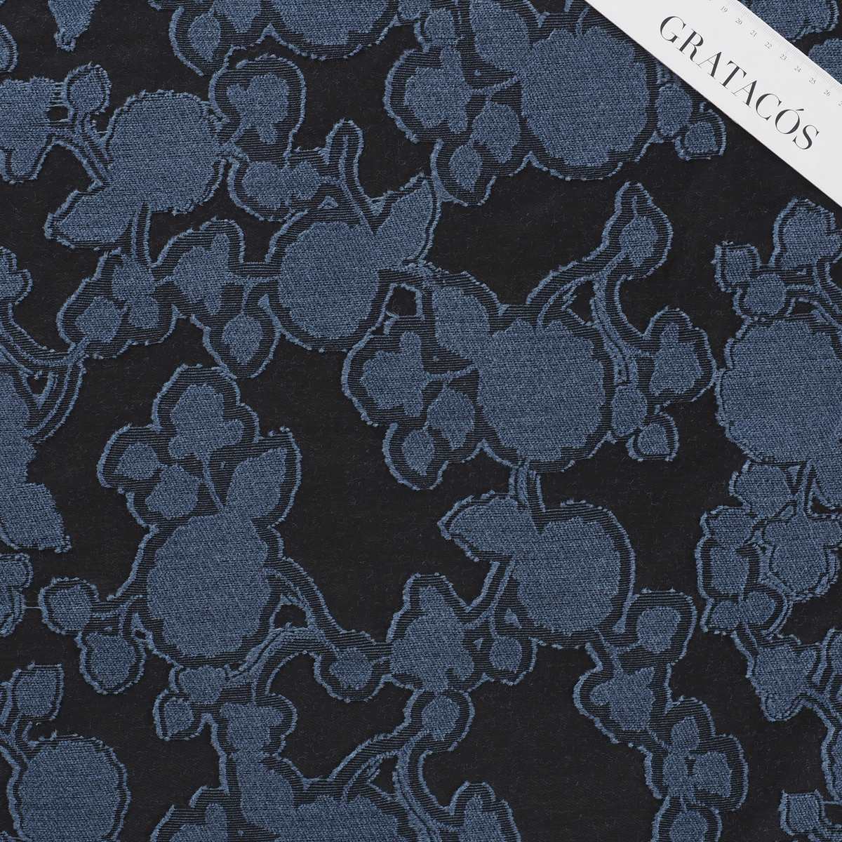 Jacquard with nylon warp and a weft of viscose, polyester and wool. 33% sustainable cellulosic viscose. Floral design inspired by antique fabrics. Fil coupé technique. Soft, wool-like touch. Woven with yarn dyed at source.