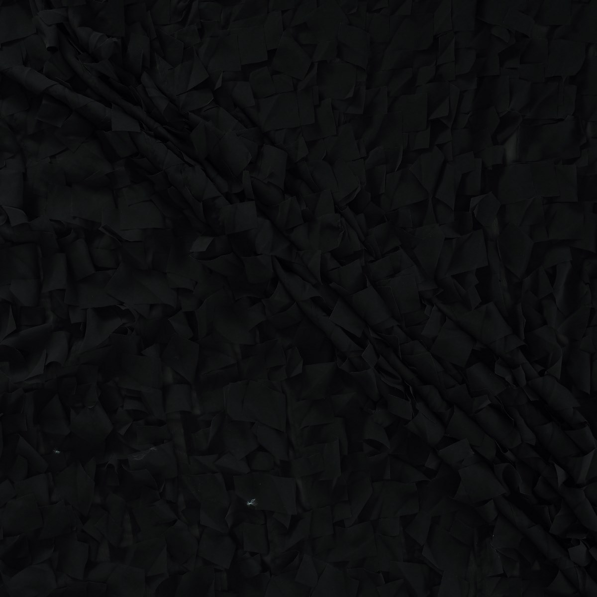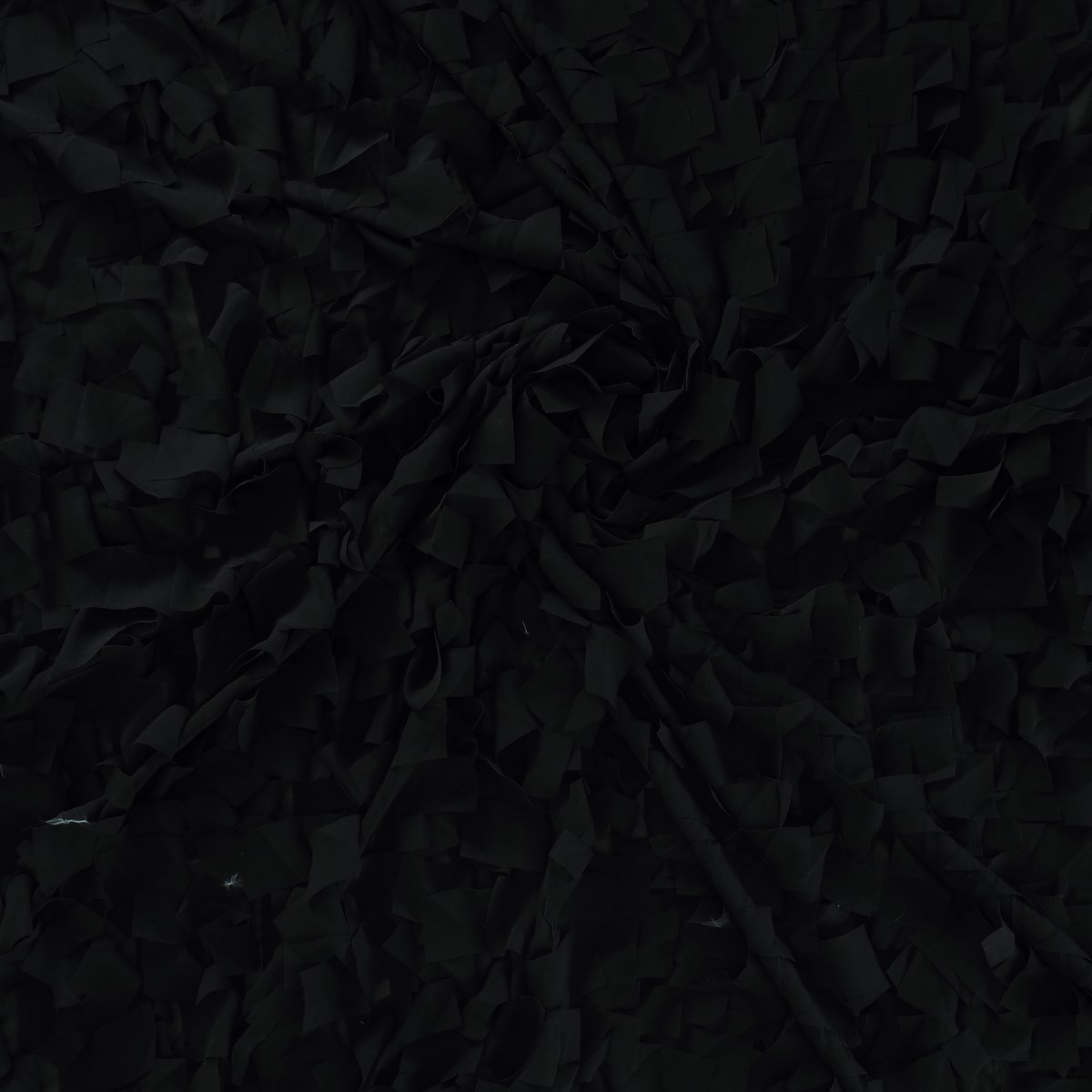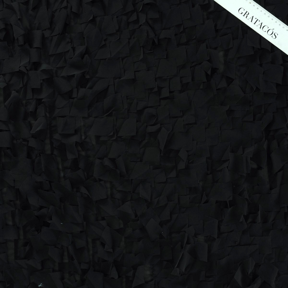 Polyester crêpe cut into rectangular shapes of various sizes, sewn on one side only to create a final 3D effect of moving pieces.