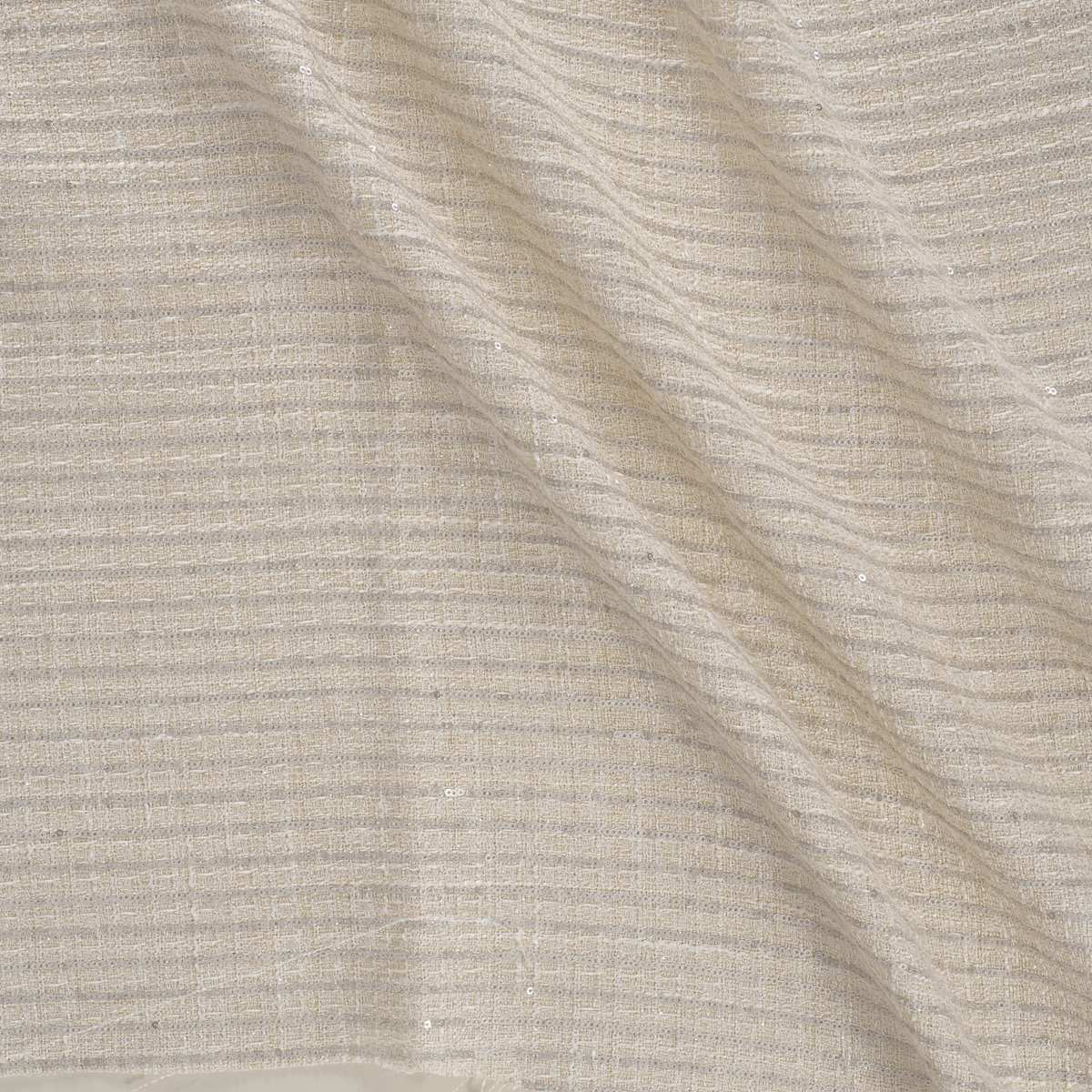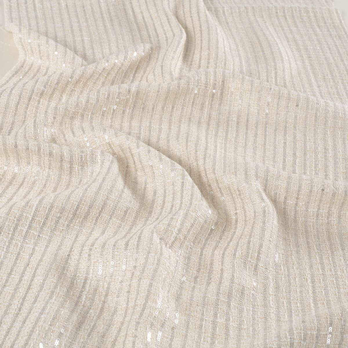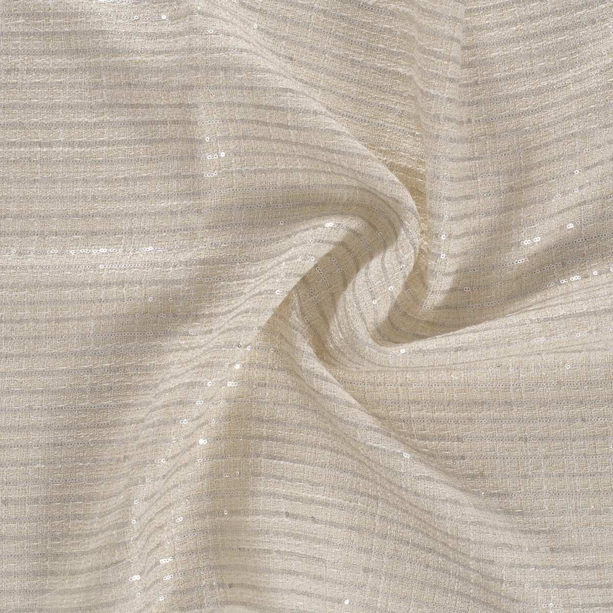 Fresh-coloured tweed with lamé-toned micro-sequins. A refined take on pinstripes with a sophisticated shimmer. Piece-dyed polyester.