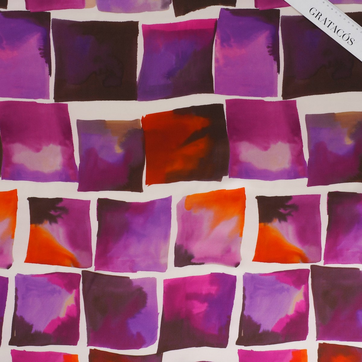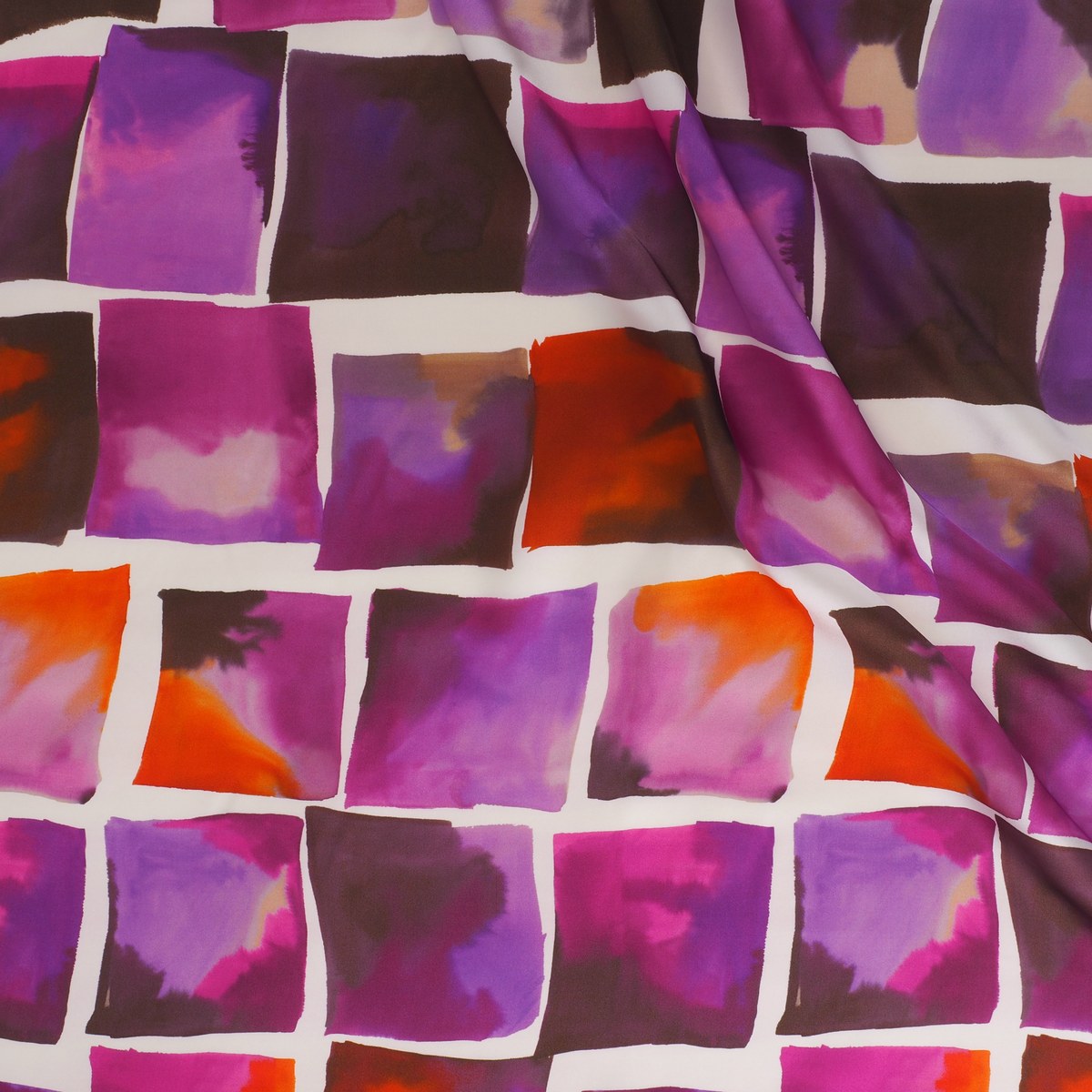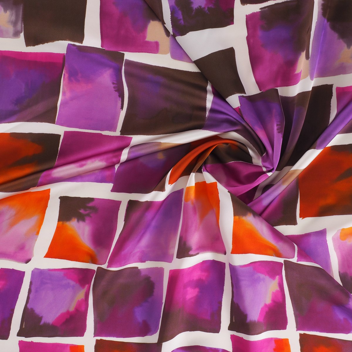 Print on 100% viscose satin. Item E0148 Aurora.