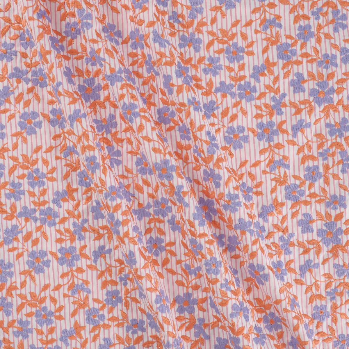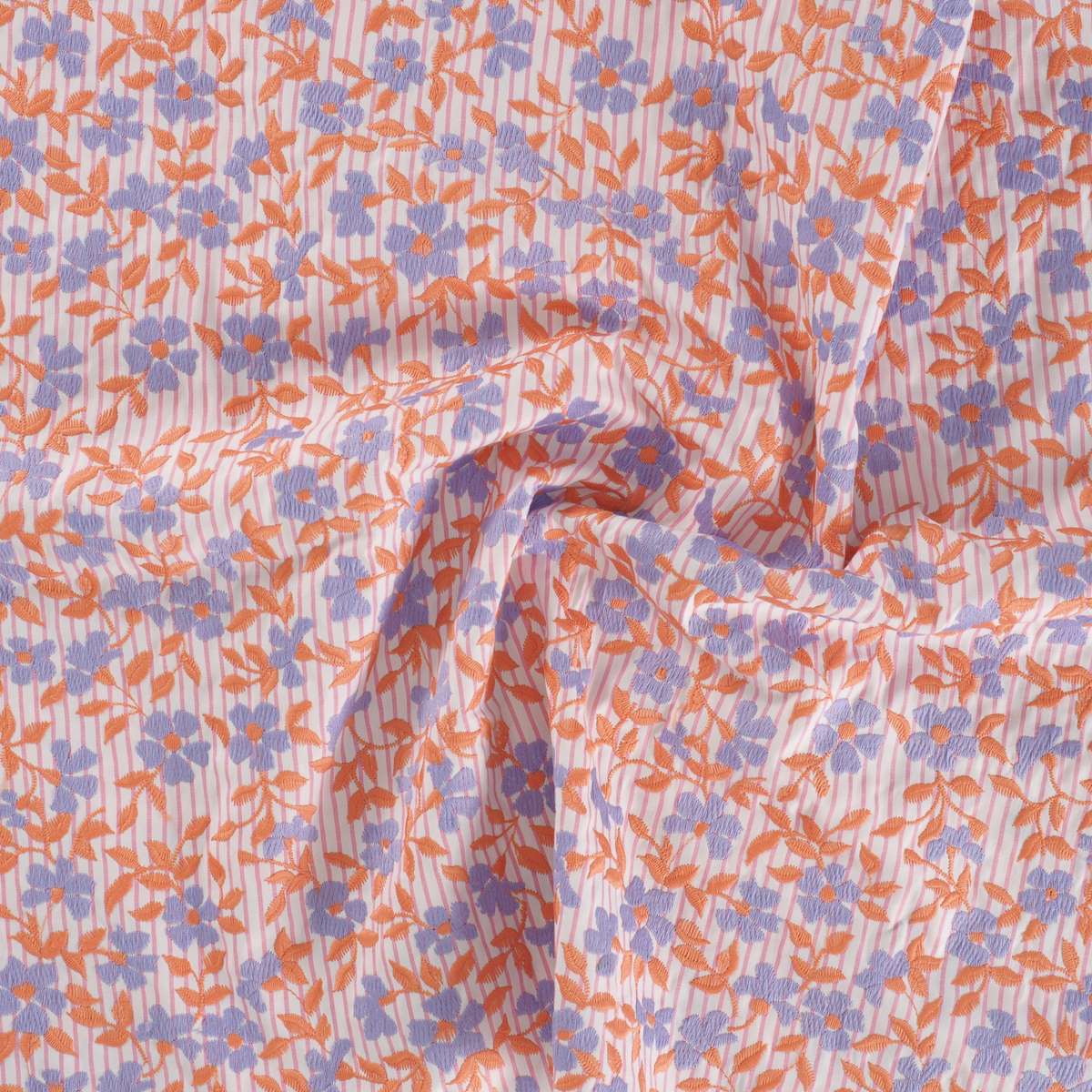 HomeCollectionEmbroidered Linen & CottonBlue orange embroidered flowers on stripes