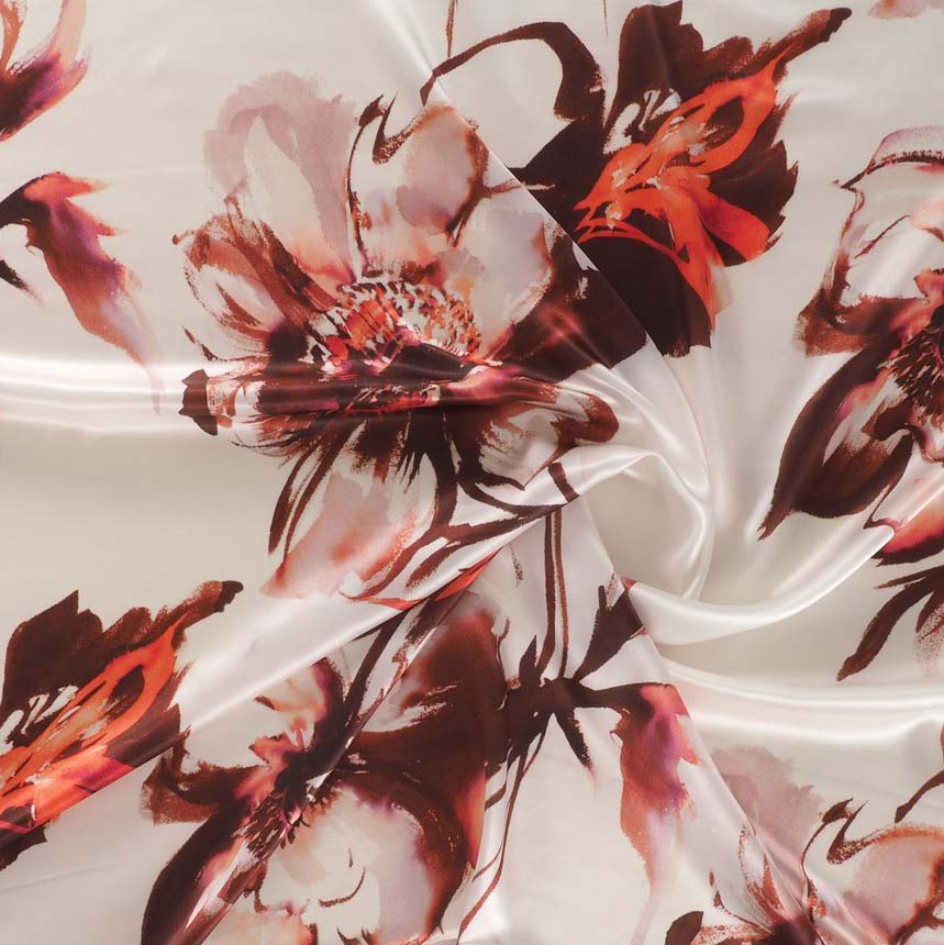 Print on 100% silk satin. Item Dani E0116.