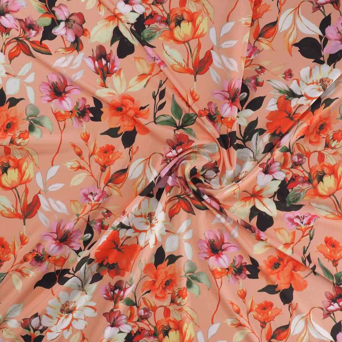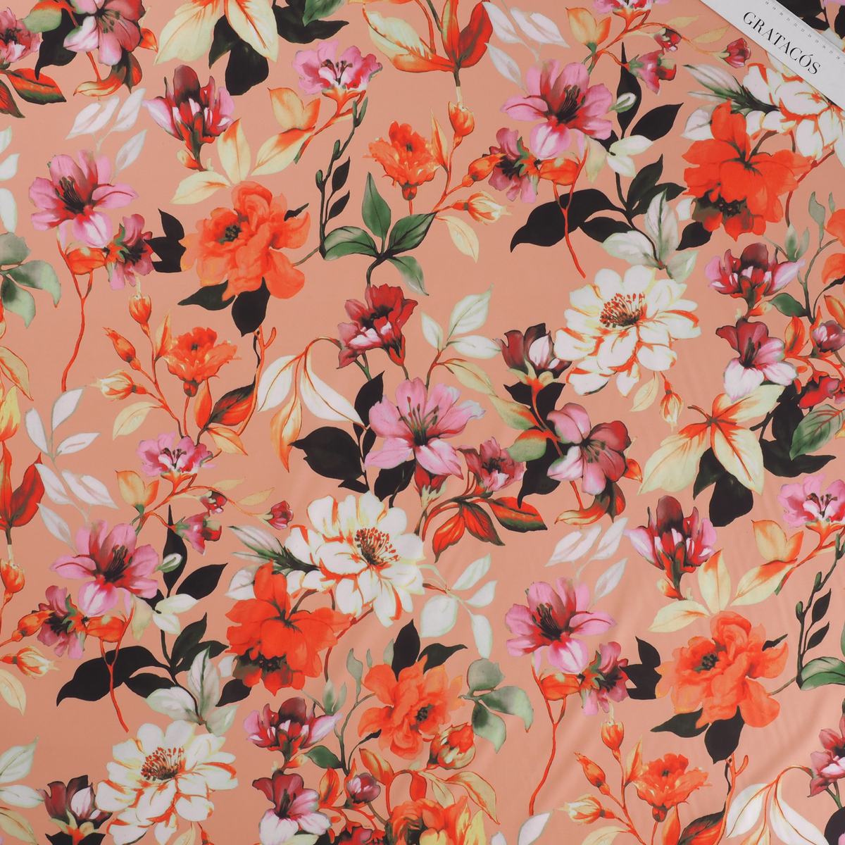 Print on 88% PL and 12% PU crêpe. Item 110 Maria.