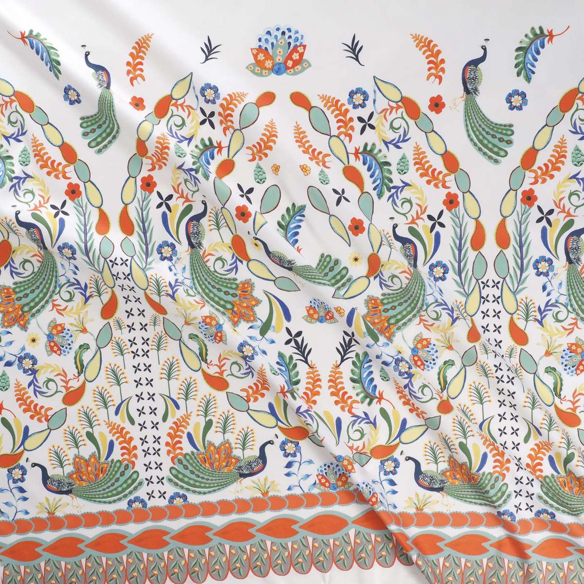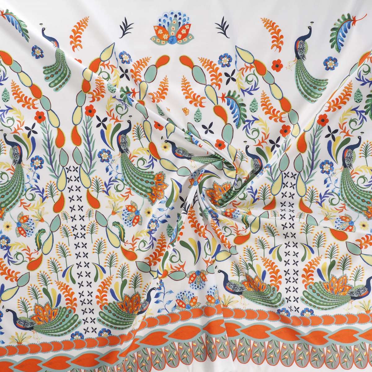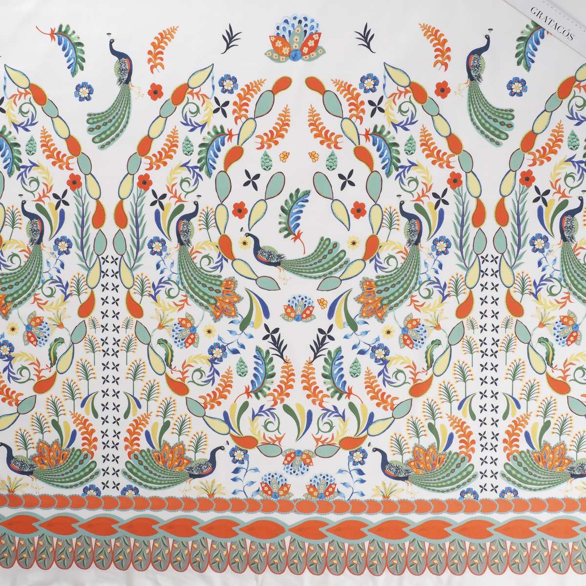 Print on stretch cotton satin certified B.C.I. This fabric ensures a responsible use of cotton and a better production for the environment. Item Ficus E0114.