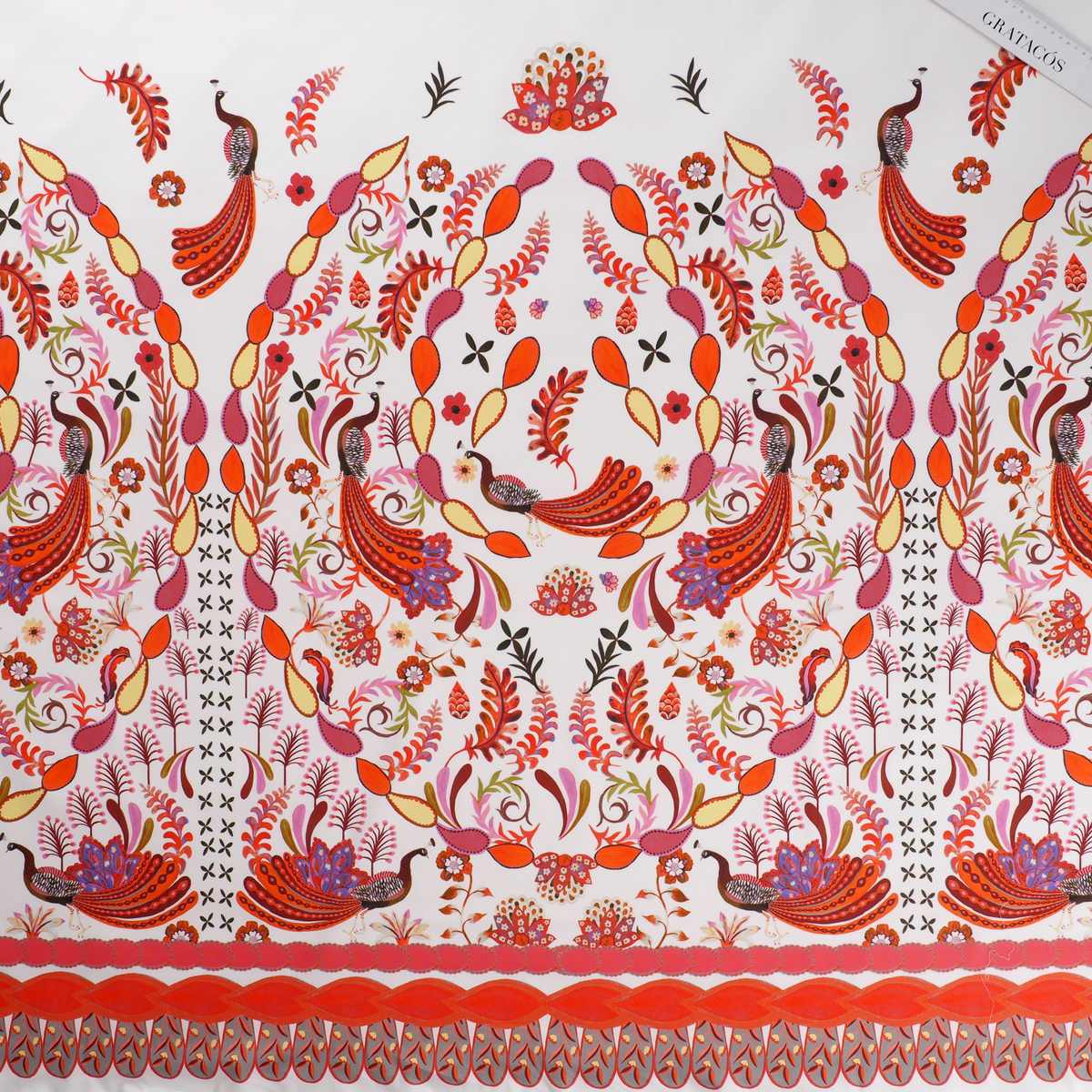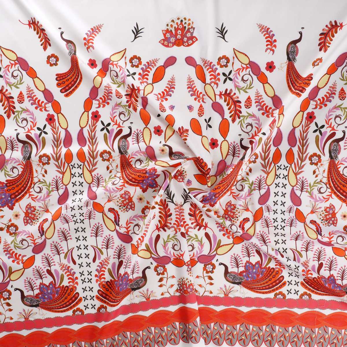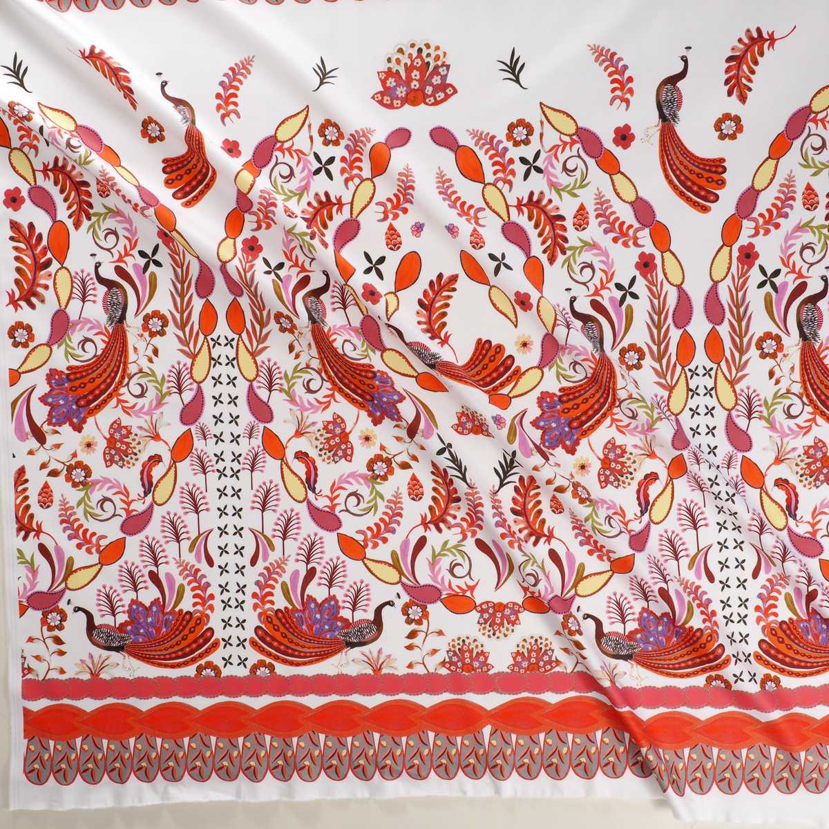Print on stretch cotton satin certified B.C.I. This fabric ensures a responsible use of cotton and a better production for the environment. Item Ficus E0114.