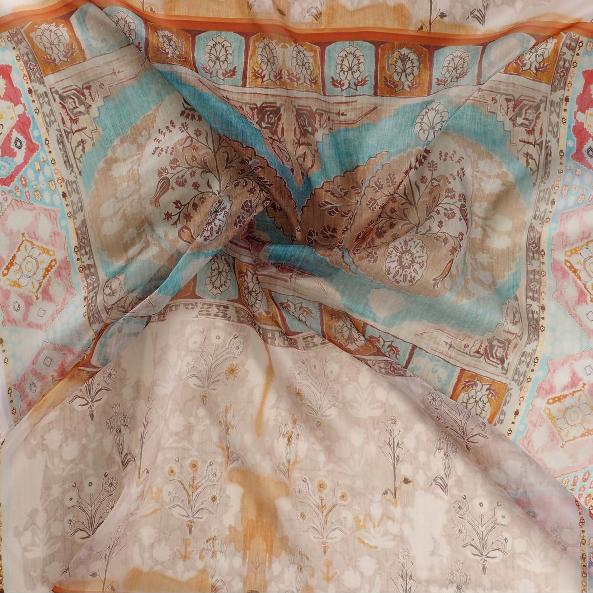 Print on organza satin 100% silk. Item E0170. Piece dyed.
