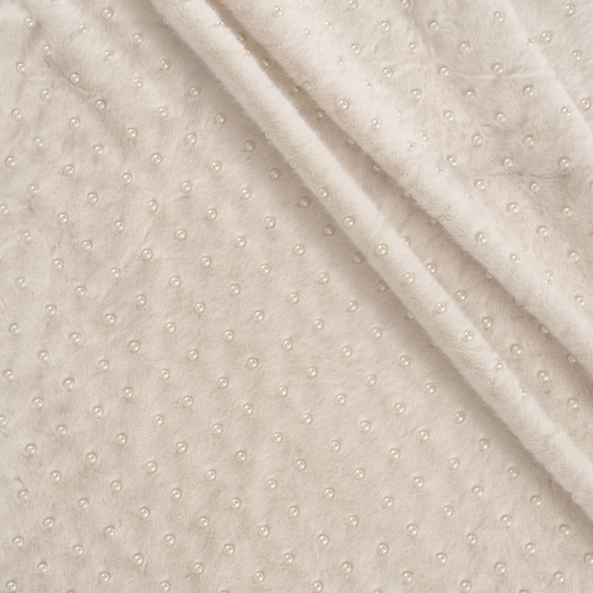 Soft short-pile faux fur with a delightful touch, embellished with embedded pearls that give it a highly sophisticated look.