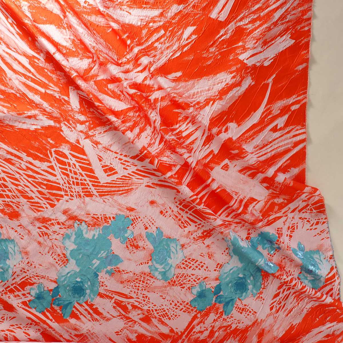 Turquoise orange jacq. cenefa lamé fil coupé