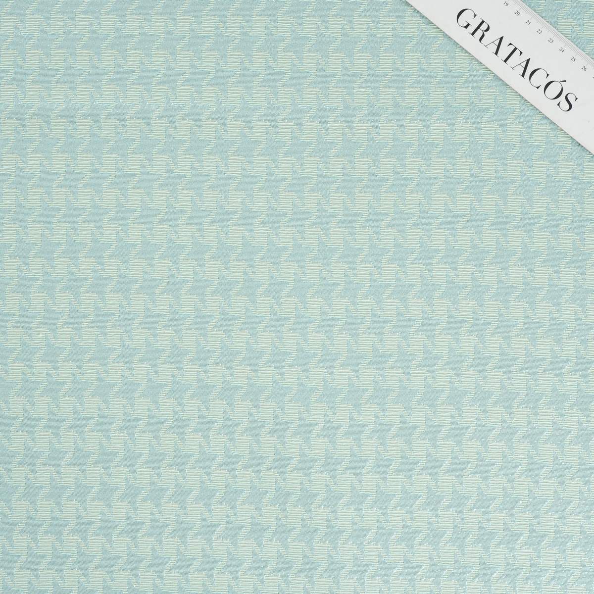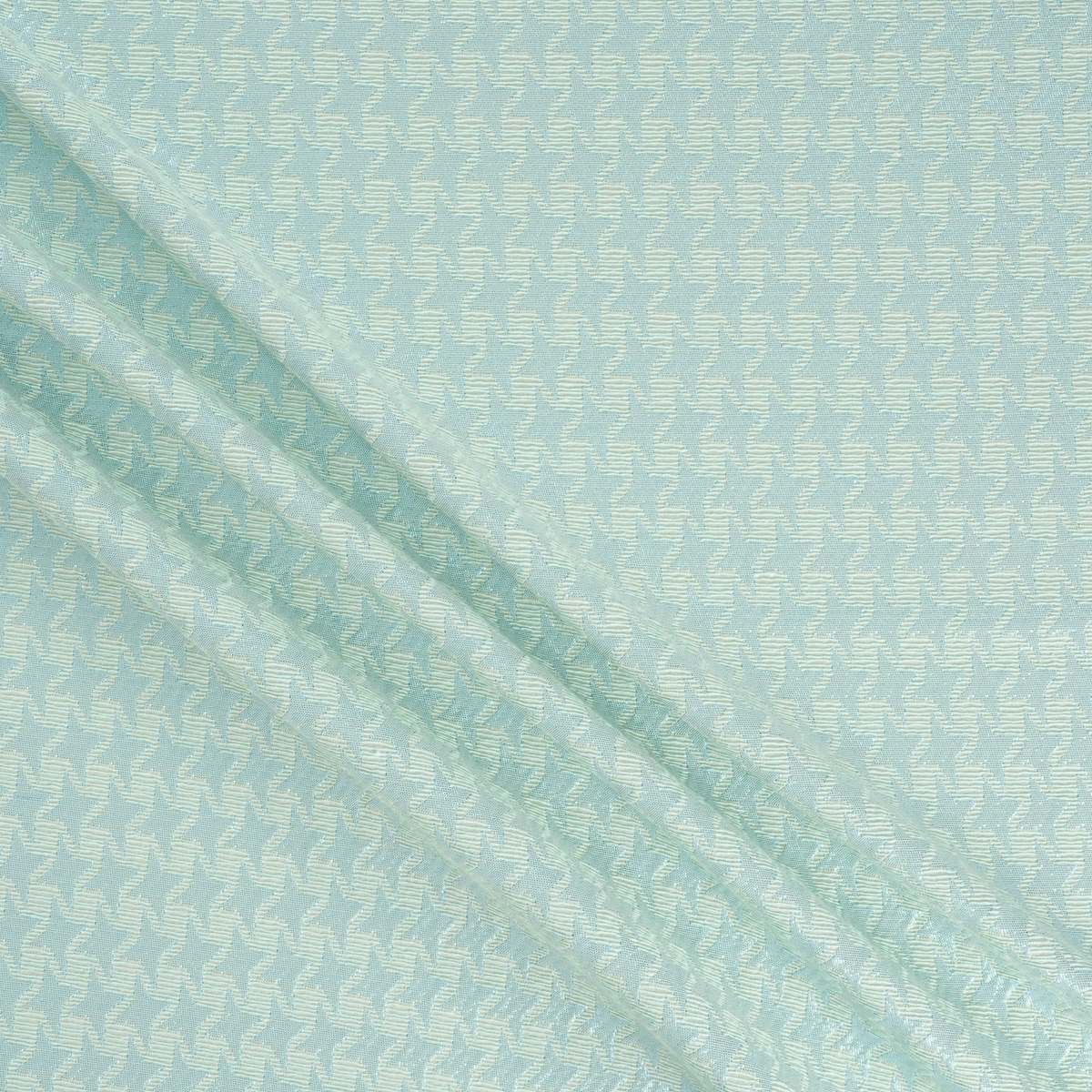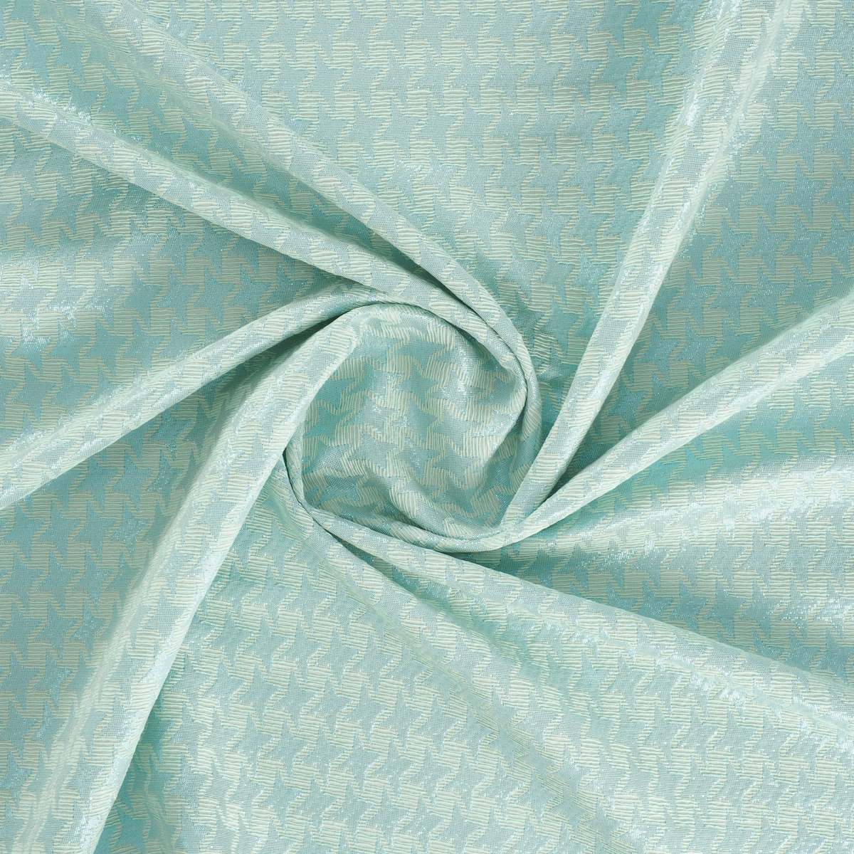 Jacquard with cotton warp. Cotton, PL and lamé weft. Geometric design with stylized stars. Sophisticated tone-on-tone shine. Soft touch. All dyed yarn.