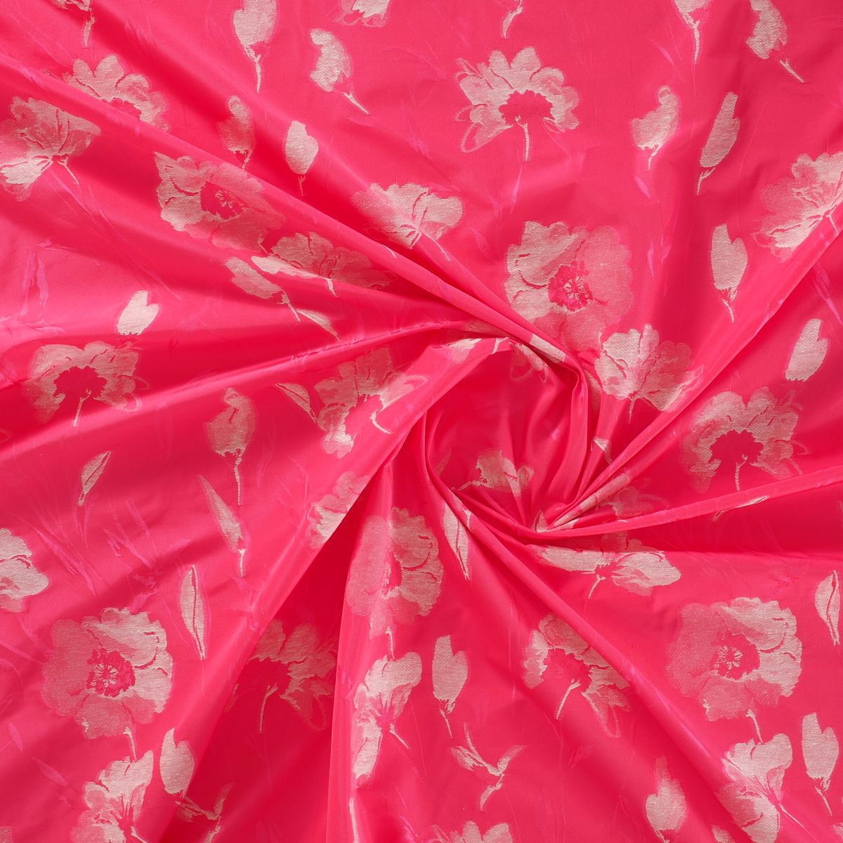 Fil coupé taffeta with floral design. With 46% recycled PL and 18% regenerated cotton. A more modern look than traditional taffetas. All yarn dyed.