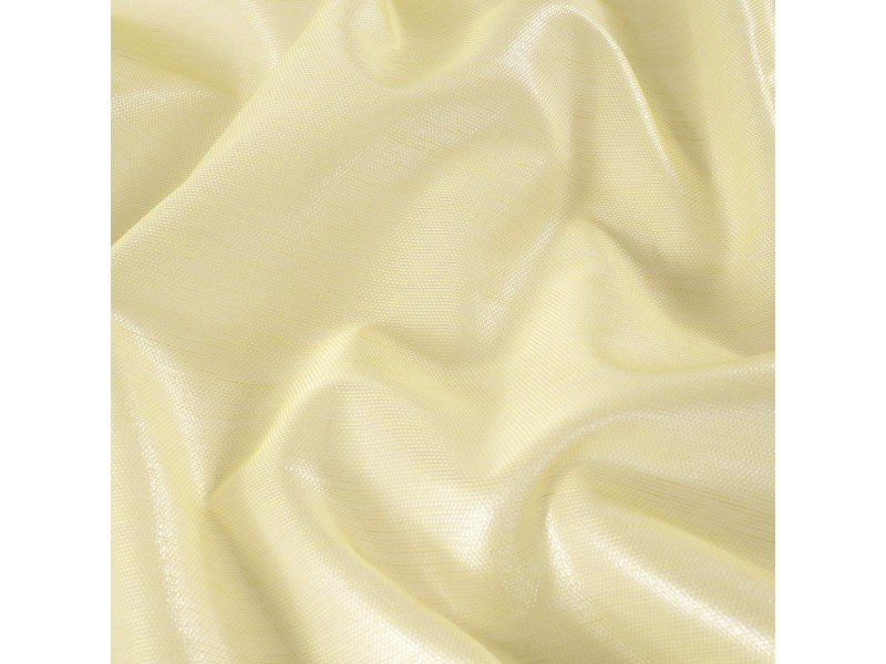 Jacquard with silk warp and linen, PL and nylon weft. Fresh and youthful colouring with transparent lamé shine for a colourful crystal-like look. All yarn dyed.