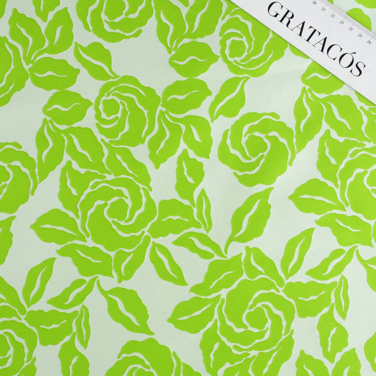 Beautiful bicolour mikado with a realistic floral design. Polyester warp and weft. Fabric with a soft yet structured handfeel, ideal for various types of garments. All threads are dyed.