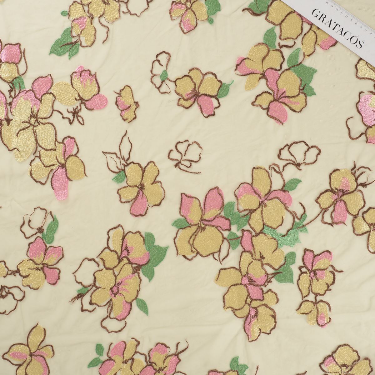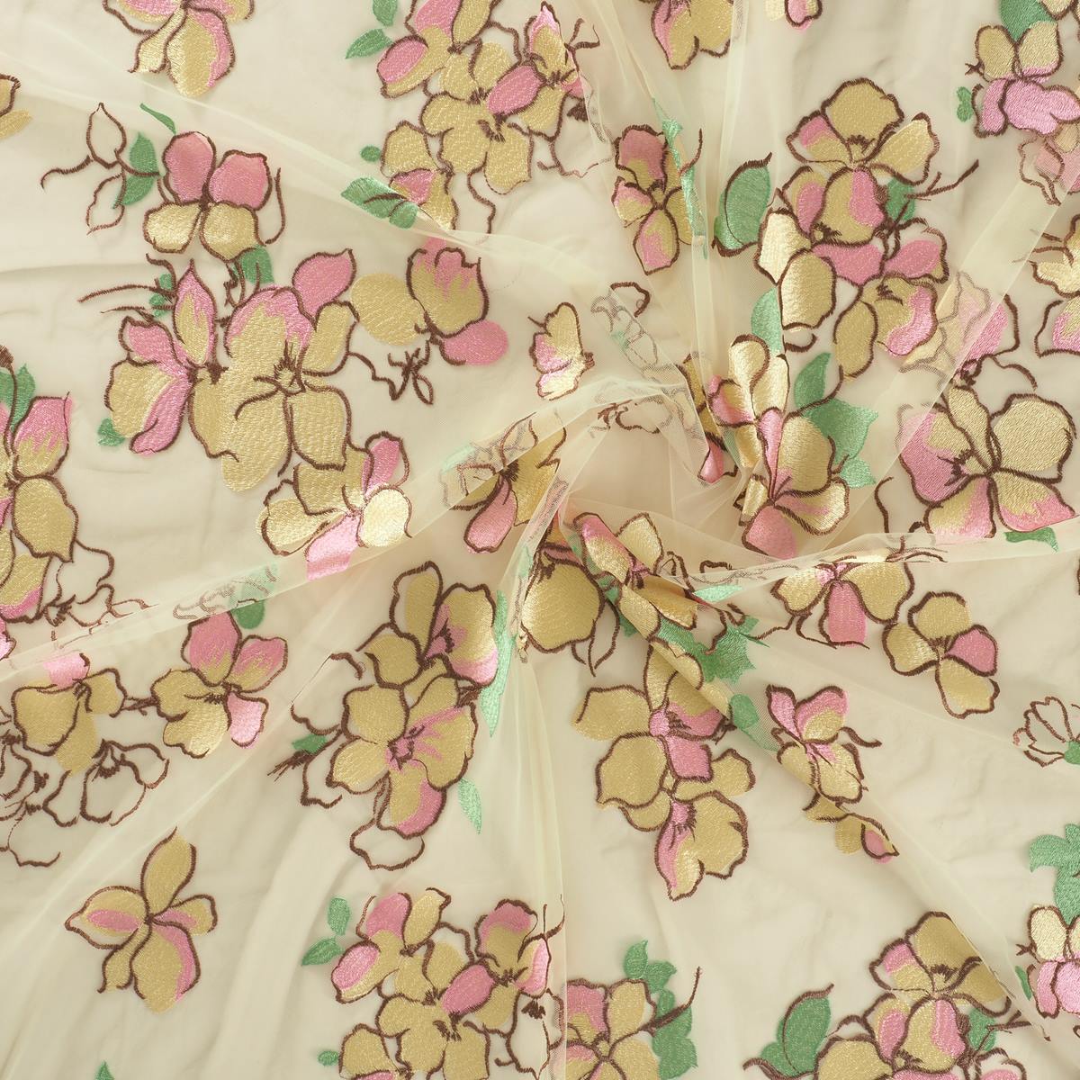HomeCollectionEmbroidered TulleLemon yellow flower embrodery