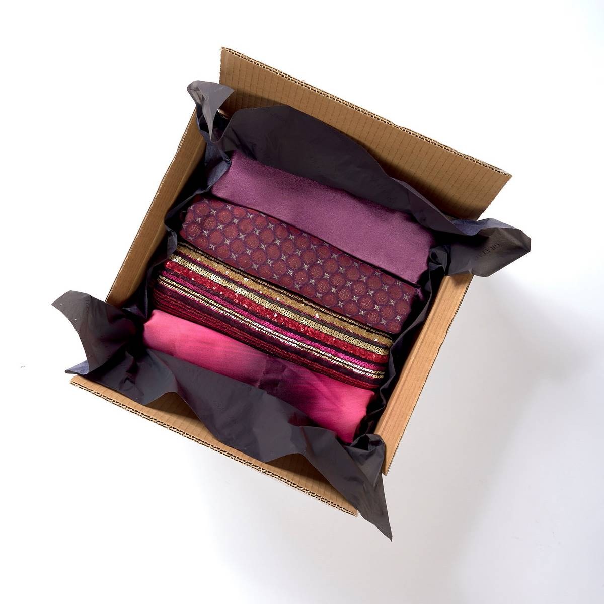 Each box includes 4 fabrics, every single one carefully selected and matched with each other: Plain, printed, embroidery, jacquard...